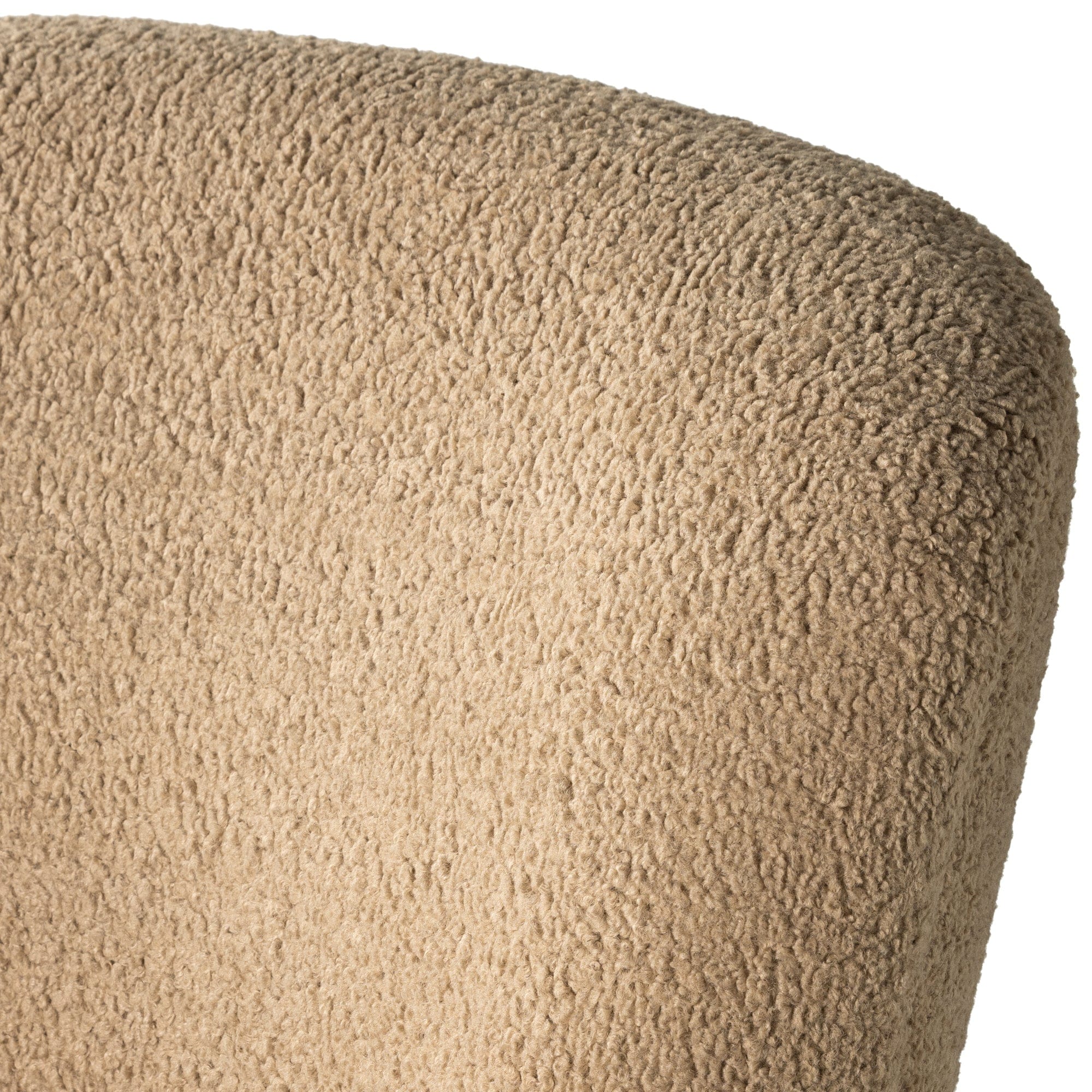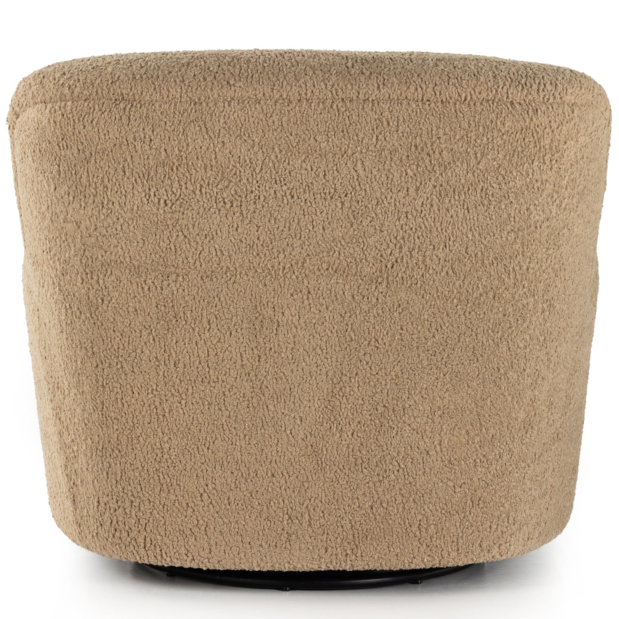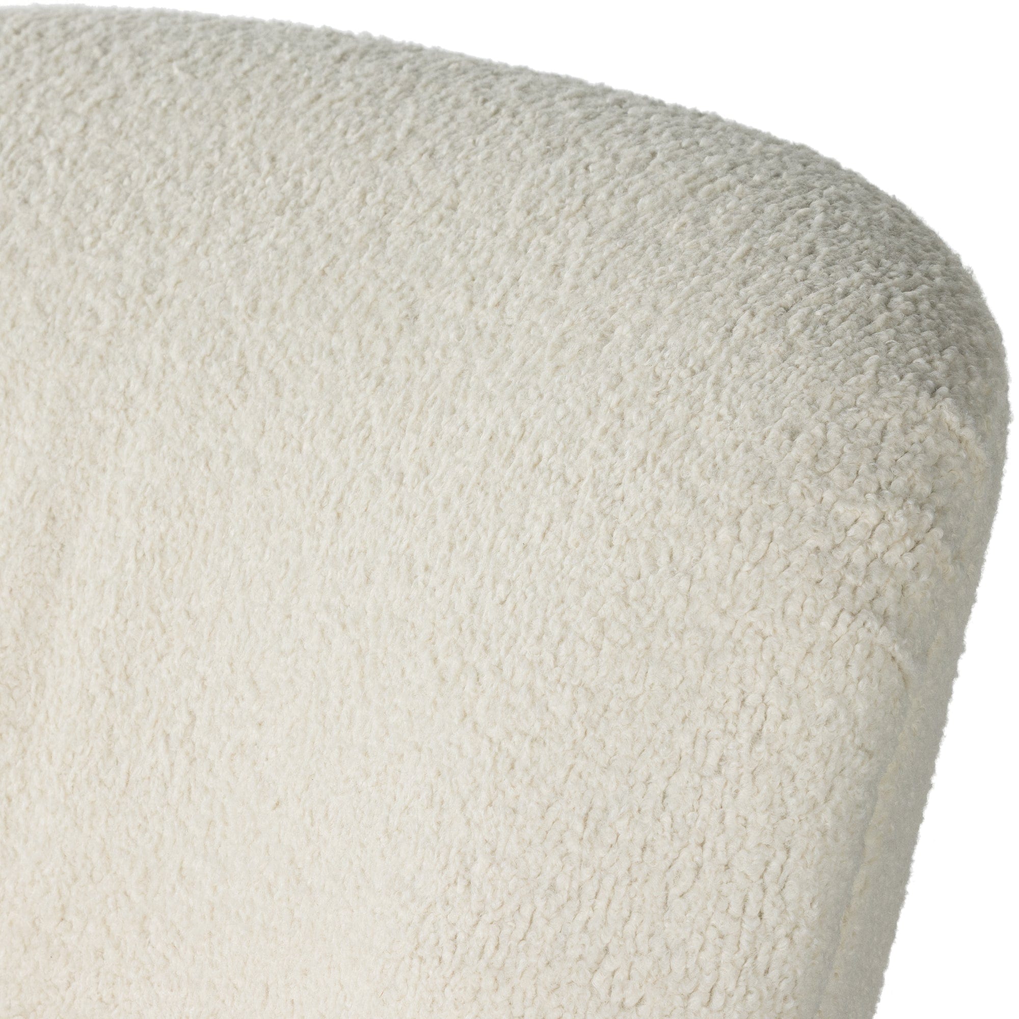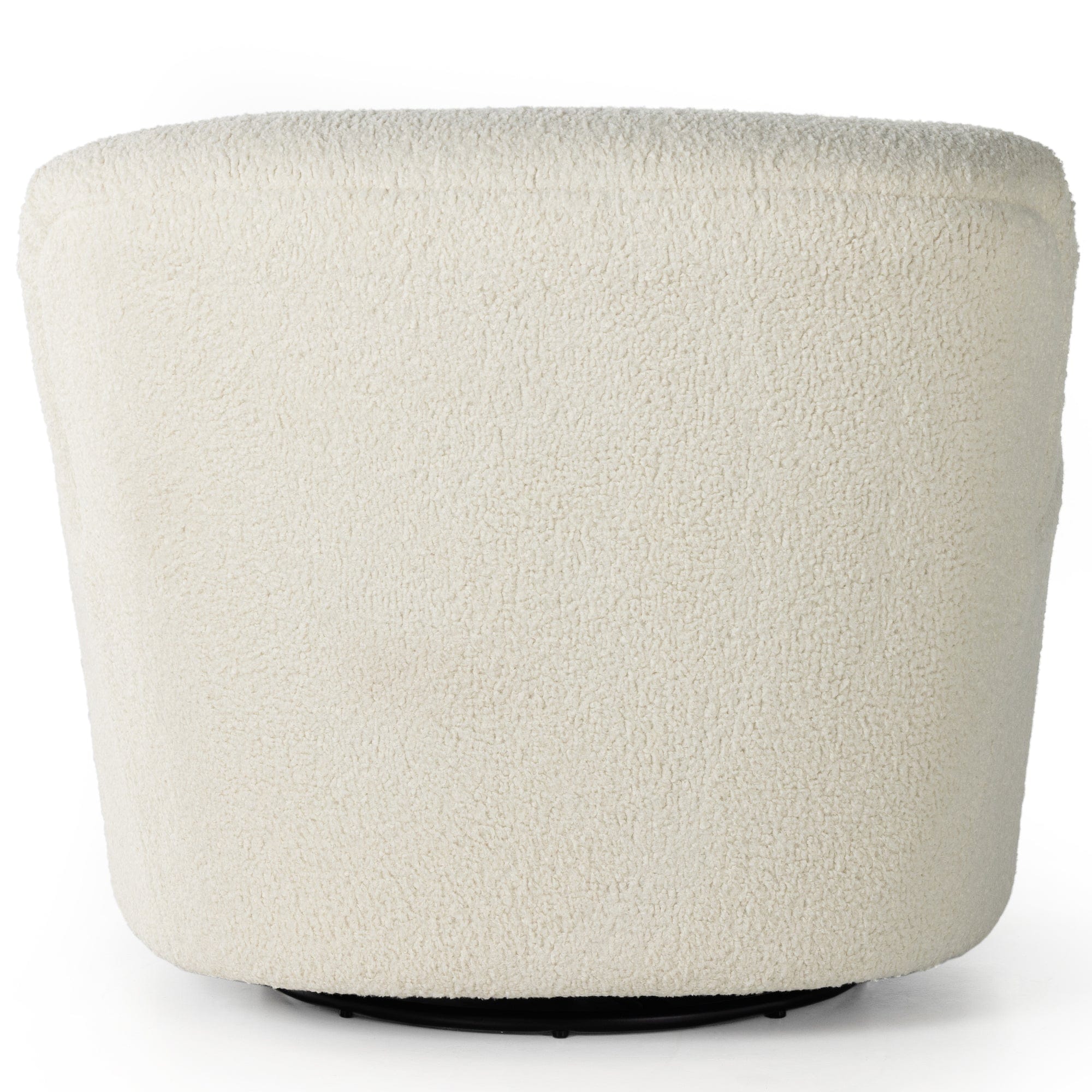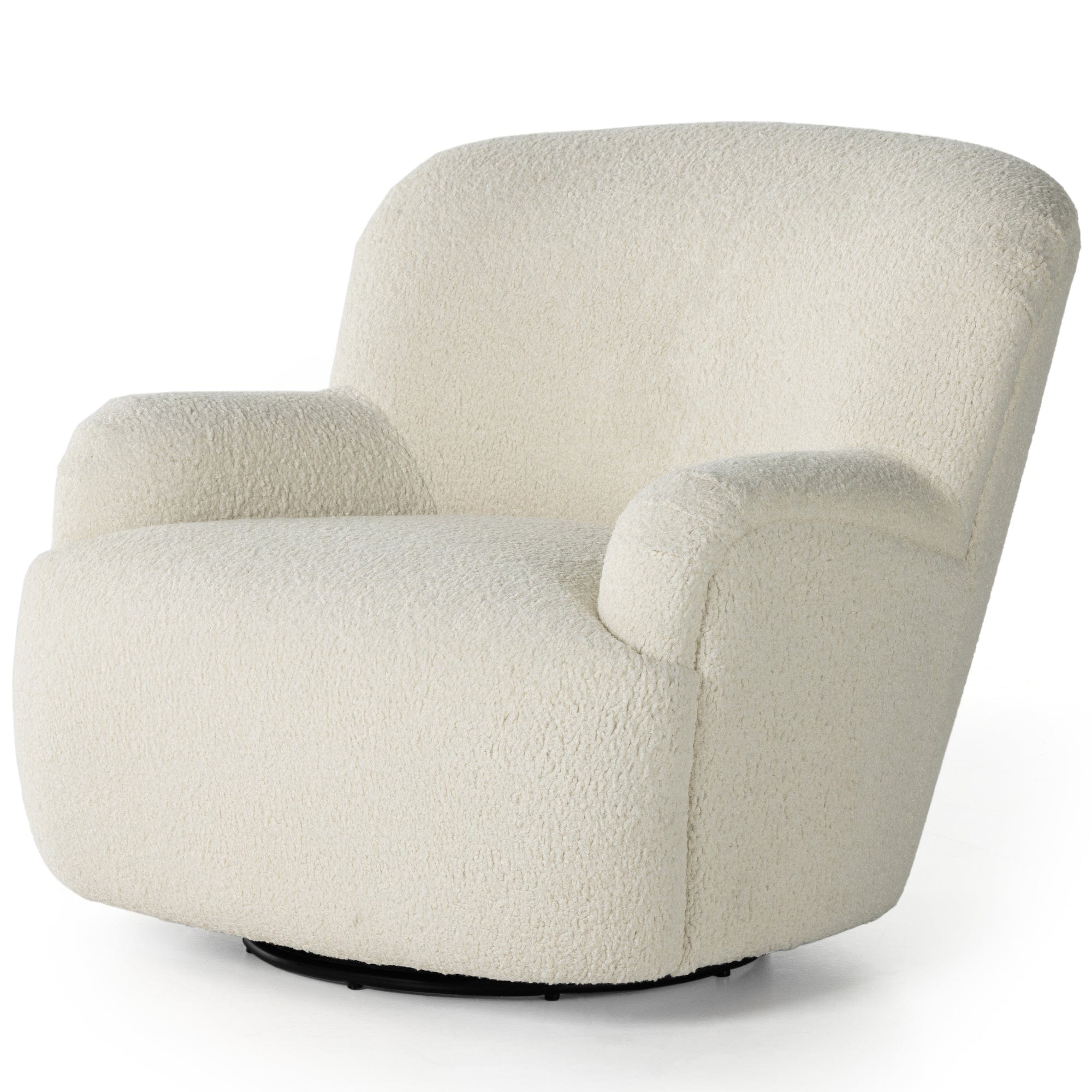 Simply classic. A high wing back pairs with softly rolled arms for a curvy look and supportive sit. Cream-colored shearling-upholstered seating tops a 360-degree swivel for total modernity.