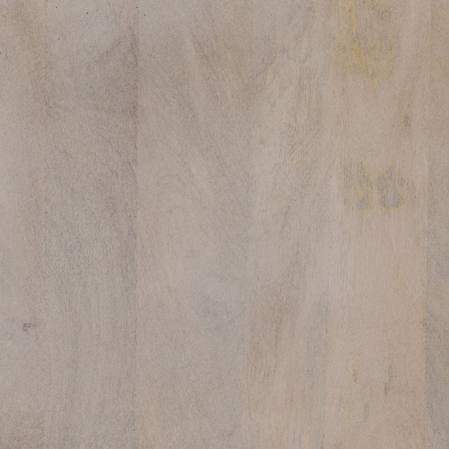 Mango wood's unique linear carving highlights texture and true artisanship. A slim gunmetal base adds an airy, cage-like look to small-scale media storage. Rear cutouts for cord management.