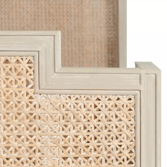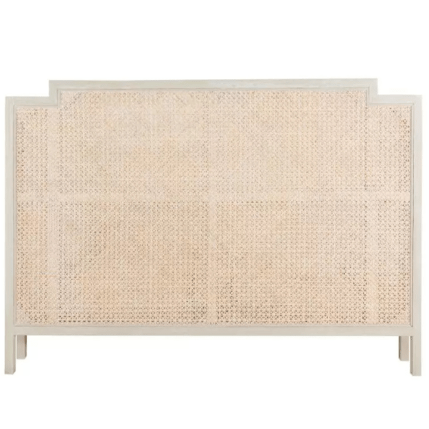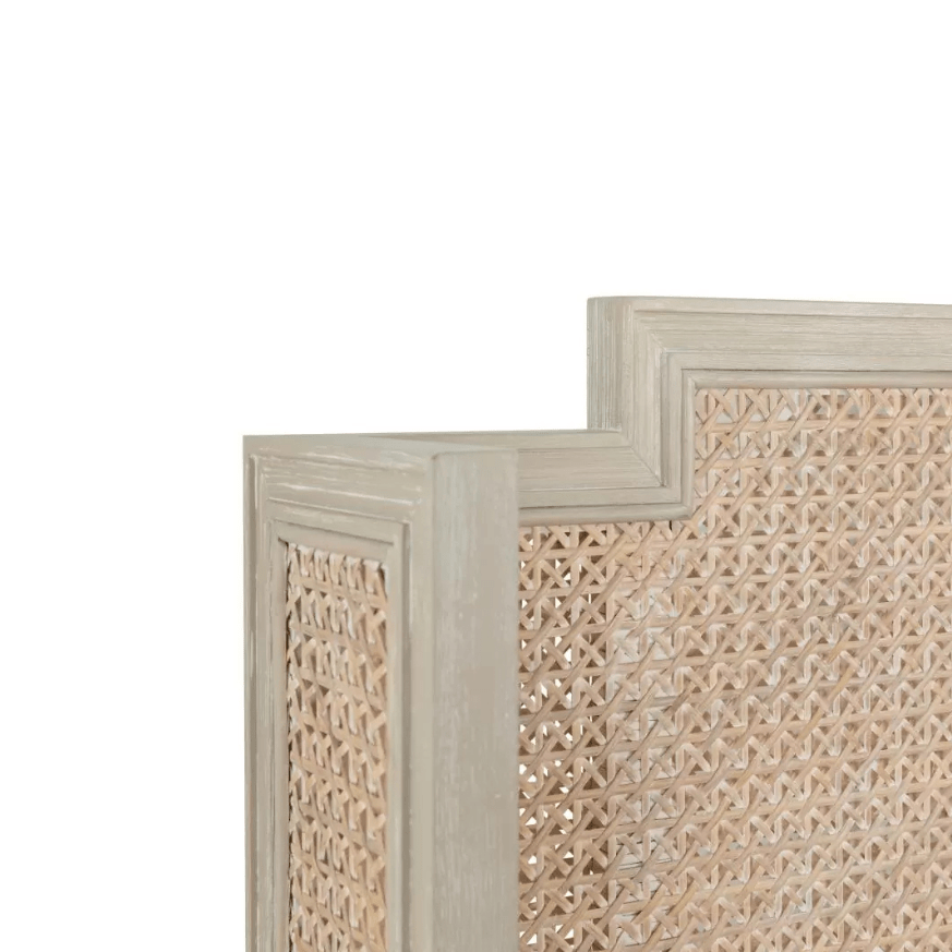 Introducing Camille, Gabby's first cane bed. Beautifully detailed, the bed features a shaped, wooden frame surrounding richly textured woven rattan that lends a light, airy vibe. The headboard and footboard have wings along the sides for an added sense of cozy comfort. Transitional styling makes this piece an ideal choice for either casual or dressed-up decors. Available in Queen and King sizes.