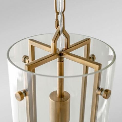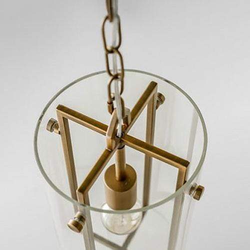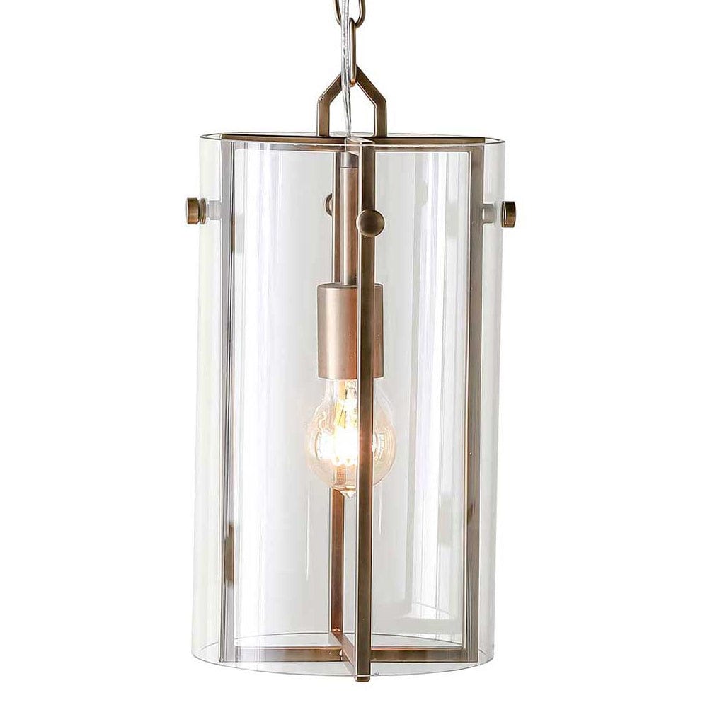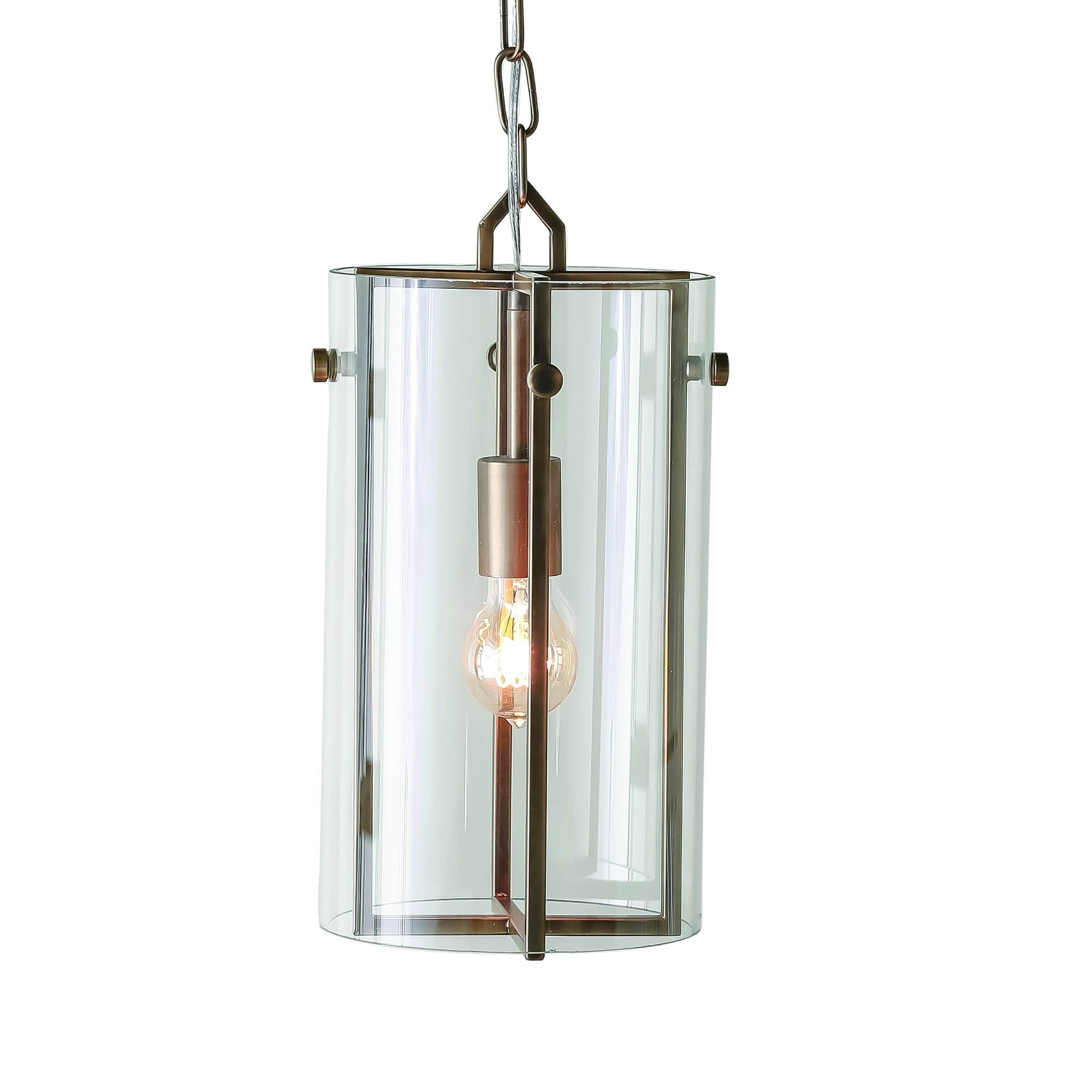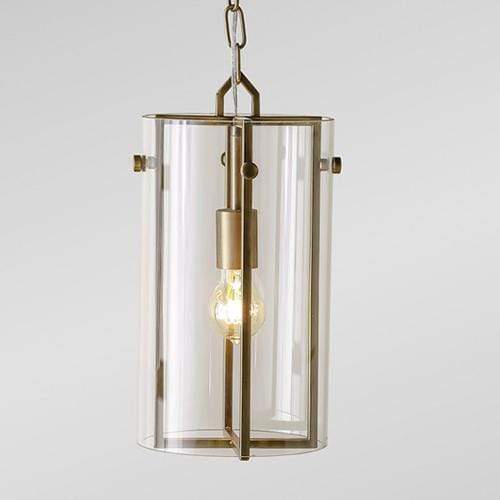 The Sharon pendant light shines with a glass column suspended by an interior brass metal framework to reveal the single bulb within. This stunning brass and glass pendant is perfect in twos and threes over a kitchen island. Vintage style bulb recommended, not included.