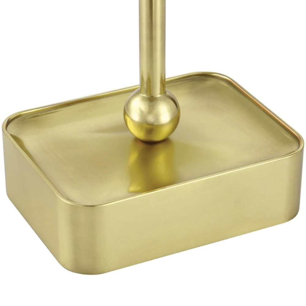 The Gadabout Brass Cordless Table Lamp is a gold lamp that gets around given its freedom to move. The rechargeable bulb sits atop the metal body in a brass finish, and the matching metal shade slides seamlessly over it. The on/off switch is on the top of the bulb, and the shade is finished on the inside for a luxe touch.