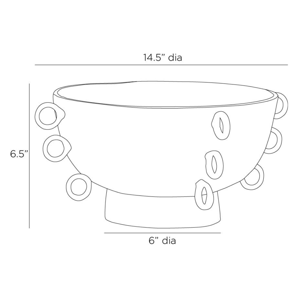 Whimsical loops along each quarter of this stunning bowl add both graphic appeal and easy portability. Cast of aluminum, finished in a graphite finish, it makes a tailored and versatile centerpiece.