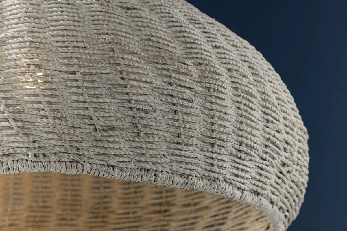 Bring the beauty of nature indoors with the white-washed seagrass Hampstead pendant. The sweeping design lines are complemented by the soft tonality of the shade, giving Hampstead an organic, yet structured feel. As the twisted weave spirals downward, it creates a dynamic effect that follows the curve of the silhouette. A matching canopy ties the fixture together with a cohesive material story. Available in two sizes with an Aged Brass finish, this pendant adds warmth and character to any space.