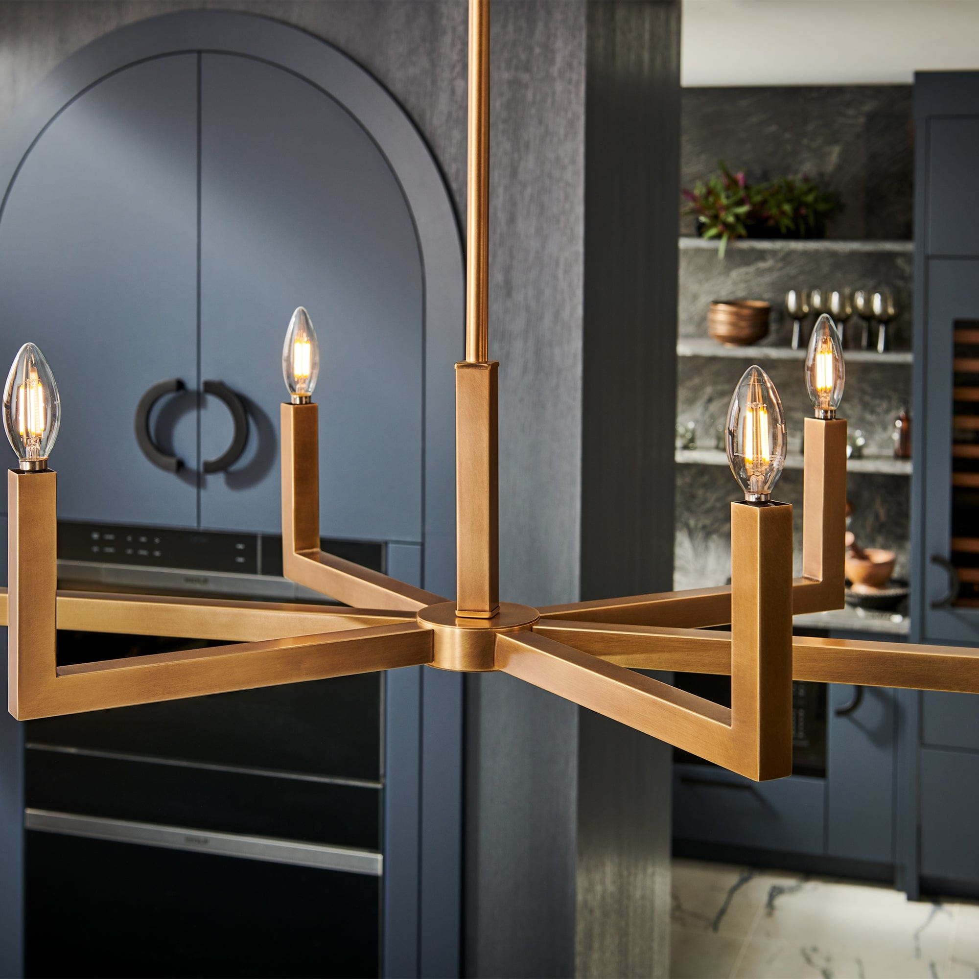 The Ezra family stunningly pairs minimalist elegance with an industrial edge. The strong square arms, sharp angles, and bold silhouette add dimensional appeal, bringing interest to dining rooms, foyers, kitchens, and beyond. Pairing Ezra with a globe-style bulb nails down the transitional, midcentury modern vibe.
