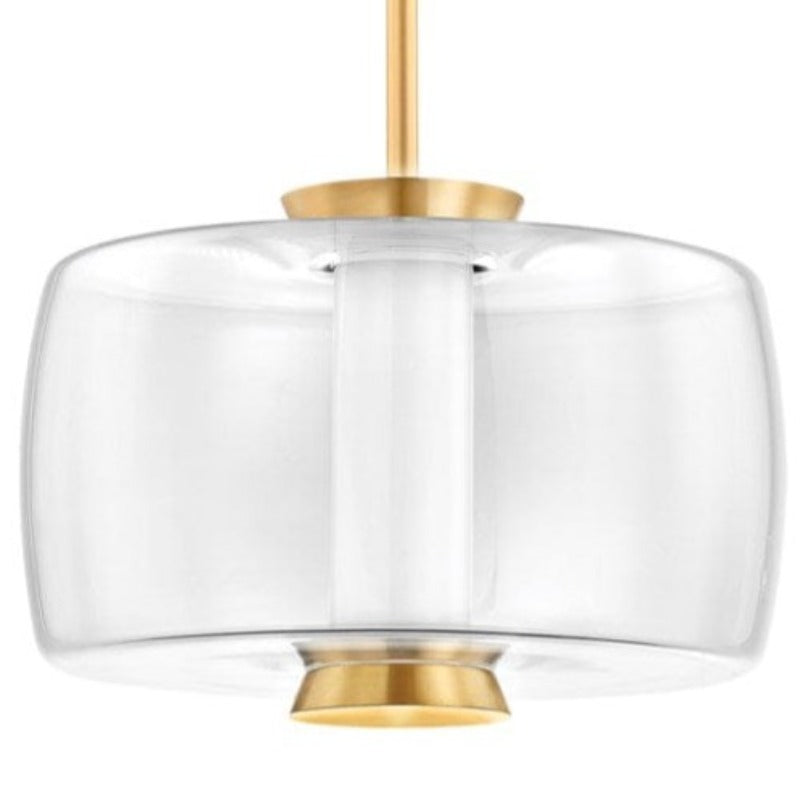 Resembling a fragile bubble suspended in air, Beau hangs with poetic beauty over dining tables, countertops, and living spaces. The ethereal, precious nature of the clear glass shade is balanced by a sleek, Aged Brass rod that supports the fixture. Illuminated by LED, this artful pendant is well-suited to contemporary interiors.