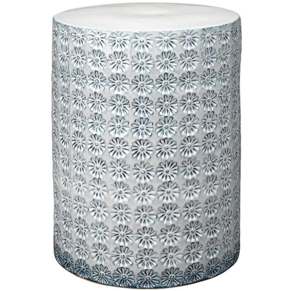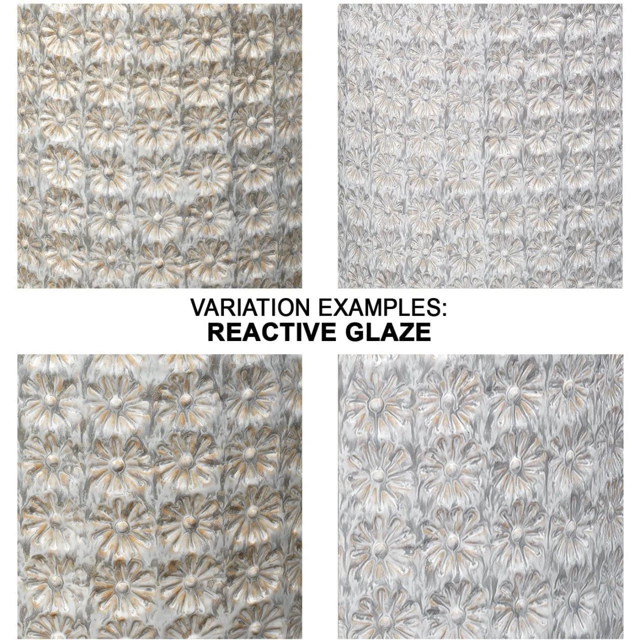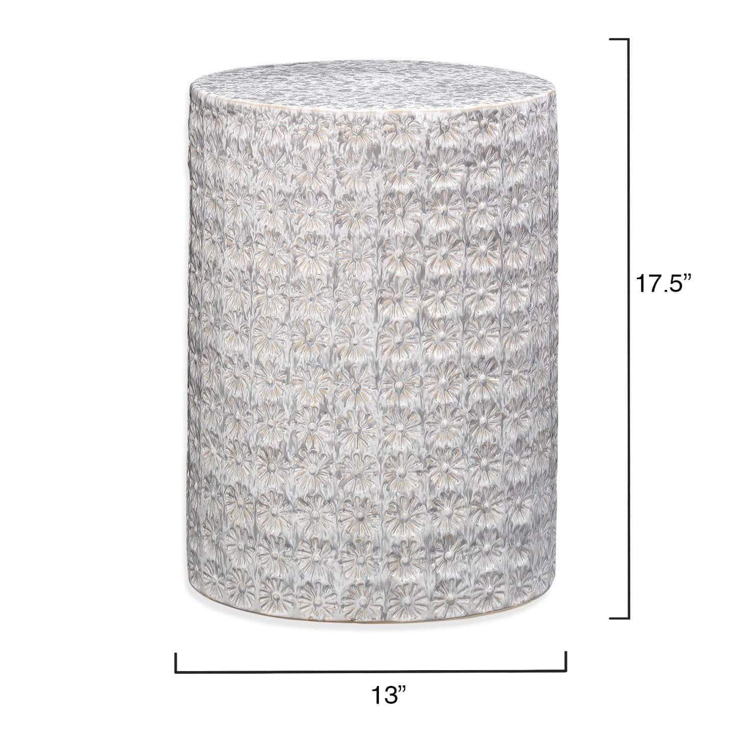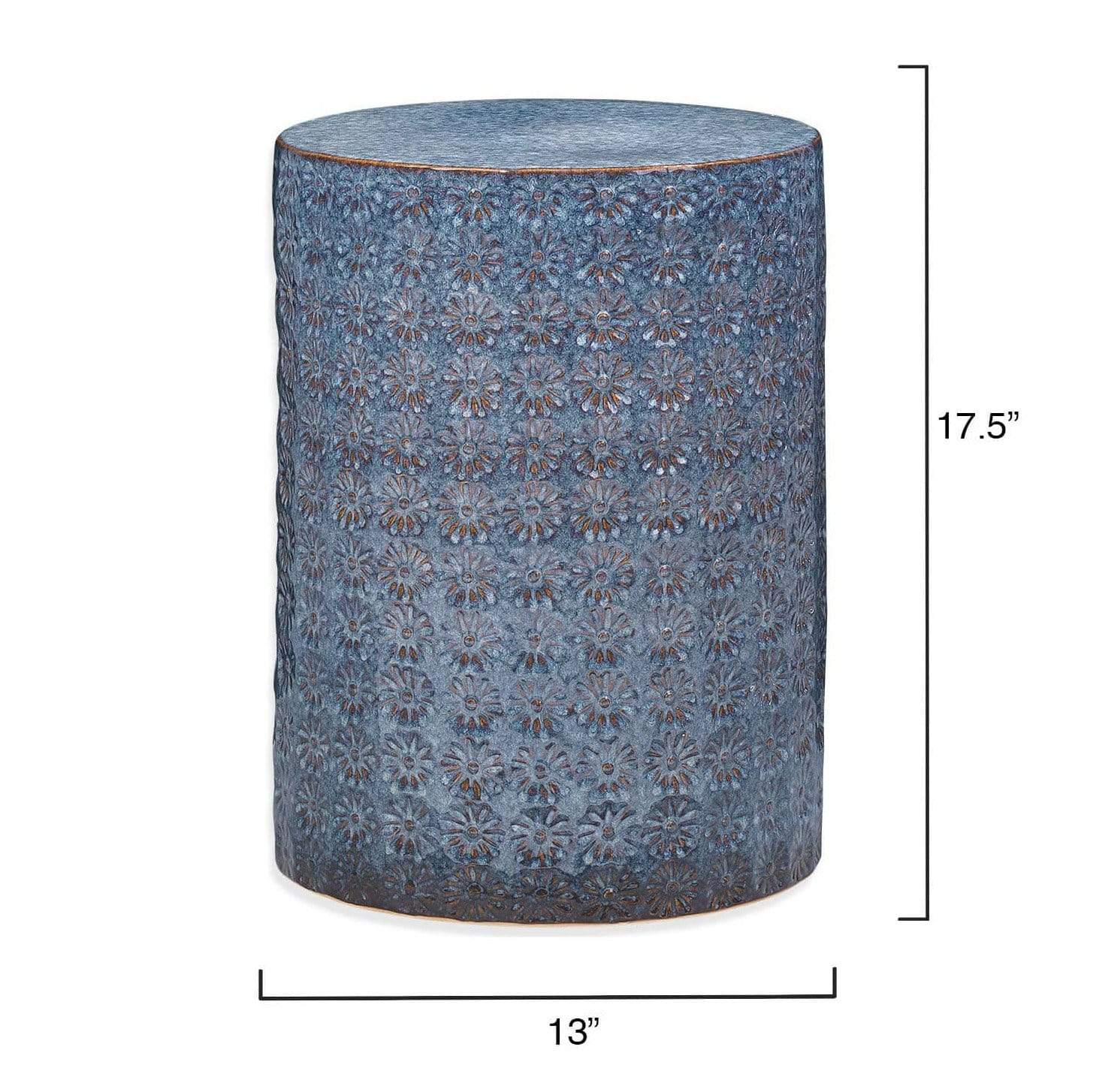 The Wildflower Side Table is a patterned ceramic side table that adds texture and color to your space. Finished with a reactive glaze, the variation in its coloring adds depth and decoration to an otherwise simple standalone piece.