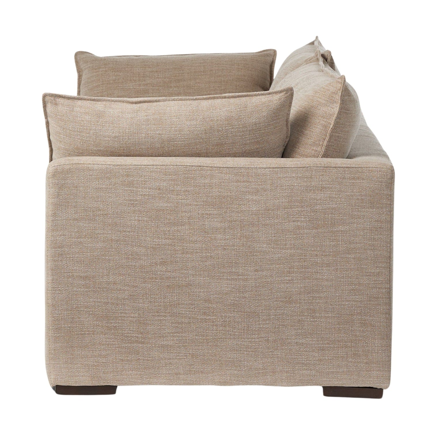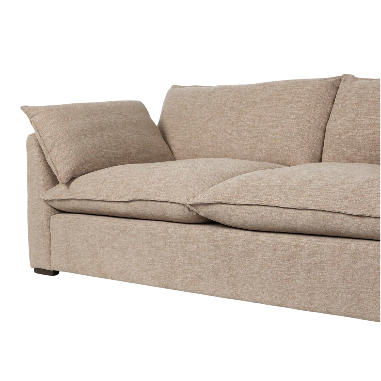 Sink-in luxury. Designed to mimic the casual comfort of a feather duvet, slightly flared arms frame feather-blend cushioning for a relaxed look and sink-in feel. Fluff cushions regularly to maintain appearance. Performance fabrics are specially created to withstand spills, stains, high traffic and wear, ensuring long-term comfort and unmatched durability.