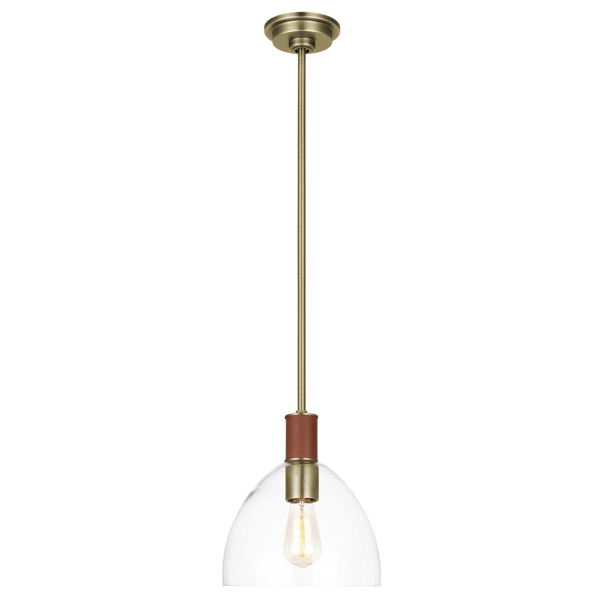 Materials: Steel, Leather, Glass Finish: Time Worn Brass Shade: Clear or Milk White Glass   1 - Medium A19 75w Max. Max. 120v -...