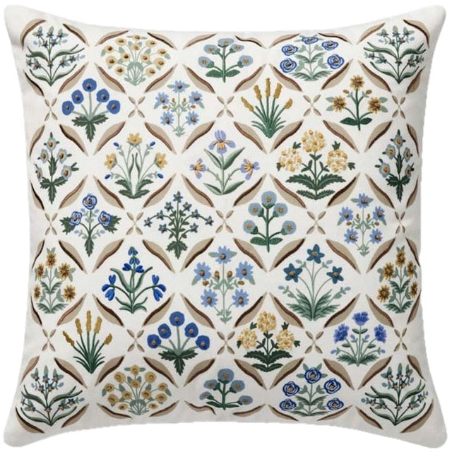 This throw pillow by Rifle Paper Co. x Loloi features a crosshatch grid of blue and pale yellow wildflower bouquets based on the company’s Estee print, which is inspired by vintage floral textile designs. The pillow is made of 100% polyester and measures 22” x 22”, a standard size to style in living rooms and bedrooms.