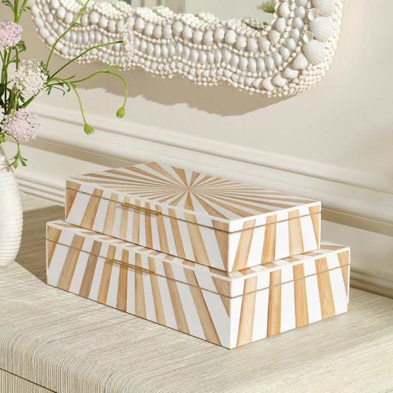 Crafted from resin and bamboo in a stunning starburst design, the Madden box set heightens every space's style and functionality.