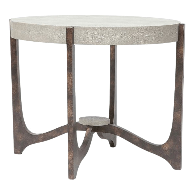 The sculptural shape of this coffee or side table is complemented by the oval, faux-shagreen top, a detail that is thoughtfully and decoratively repeated on the base. Evoking a late-50's vibe, the Dexter has a top that appears to float and a finished look that adds just the right amount of polish to a space.