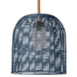 This birdcage-inspired chandelier, on a braided abaca rope pendant, has airy faux rattan slats that let light shine through and showcase the material's natural beauty.