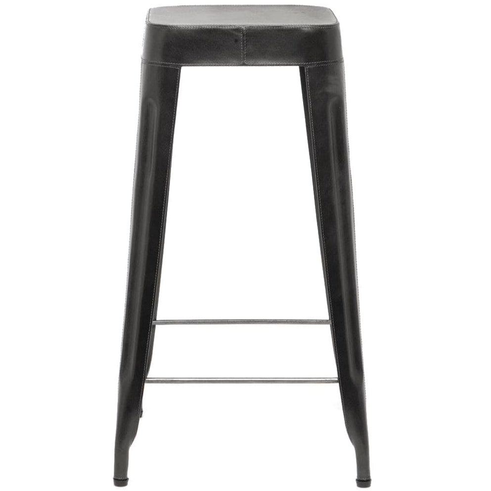 An upgraded version of a traditional bar stool, the easy-to-move Jamy features gorgeous leather with a slight contrast stitch. It's a sophisticated twist on a basic seating element. Natural variations in this material may occur. Slight differences in color and texture are characteristics of this collection's aged full-grain leather. This durable, high quality leather may show inherent markings, distressed appearance, and variations in pattern.
