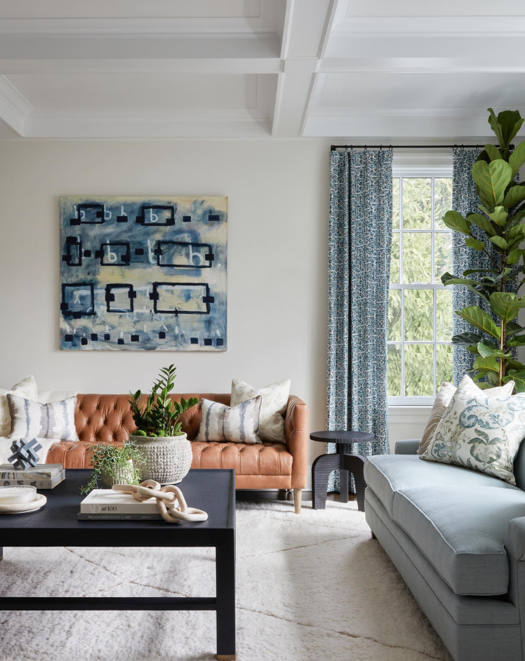 The substantial square or rectangle Jarin coffee table is fully finished in our faux Belgian linen, highlighting the material's texture and sheen with a simple shape. A great lip element around the top surface is only one of the piece's many considered details.