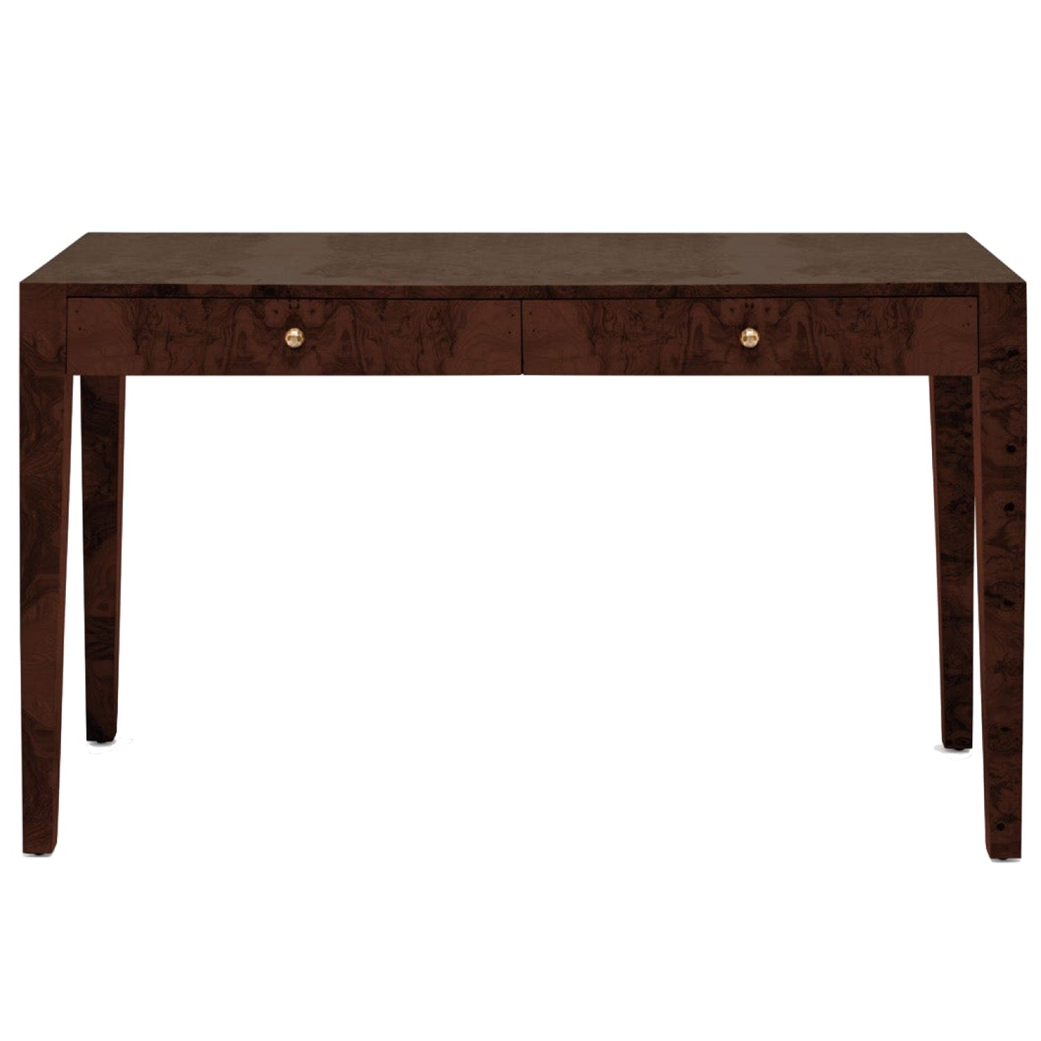 Straightforward silhouettes let the vibrant pattern of the Lindsey's veneer finish become the focus in this exciting new collection. Detailed variation highlights the pieces' burled woodboth olive ash and walnut. Faceted brass hardware adds a polished finish.
