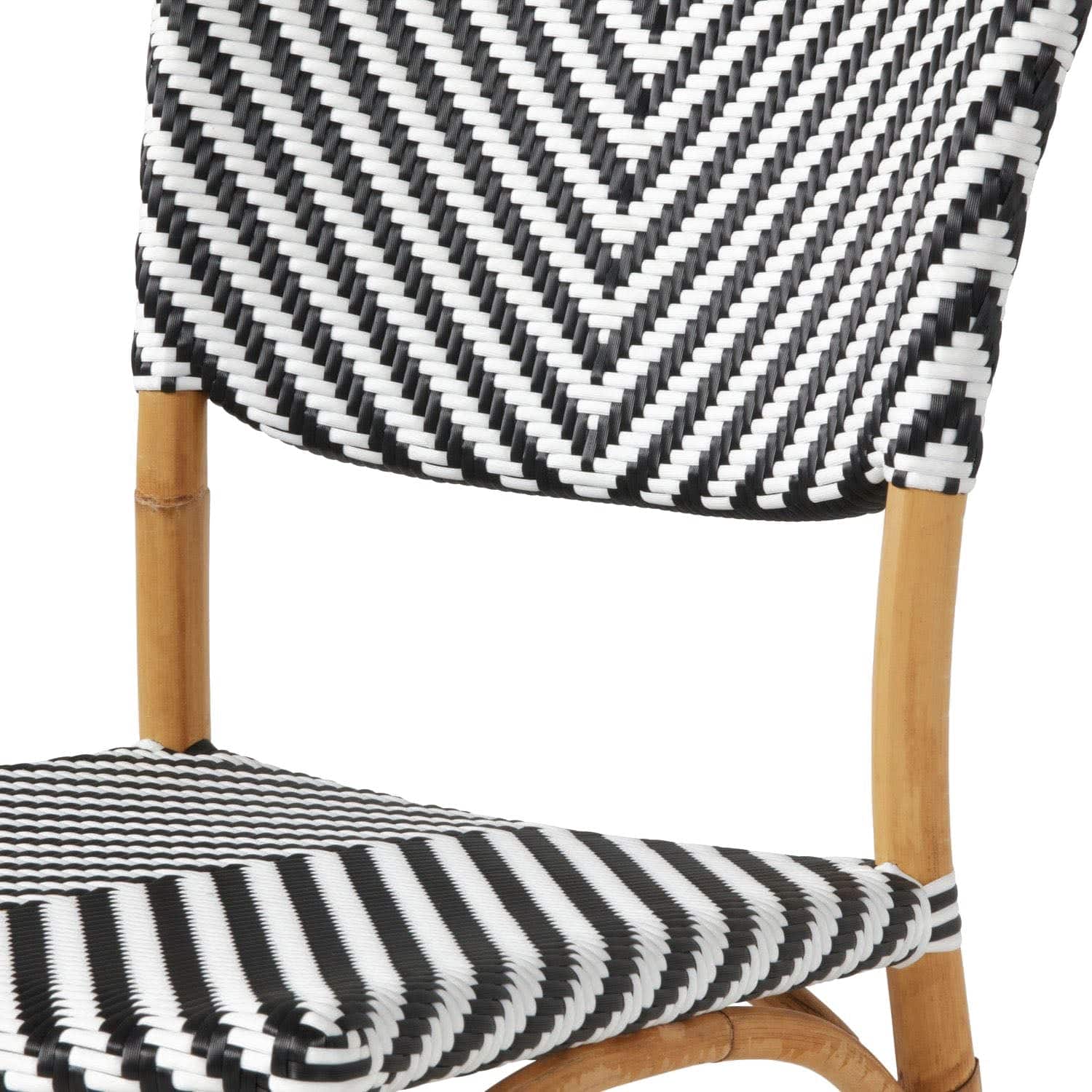 Our McKinley offers our modern take on the classic bistro chair, with a broader woven seat and back in a durable, chevron black/white faux flat rattan or natural flat rattan.