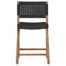 Extend modern style to the outdoors with our Neal stool, featuring a structured teak frame. Wrapped in a loose weave of flat faux wicker, it offers a slight angled back recline for comfort.