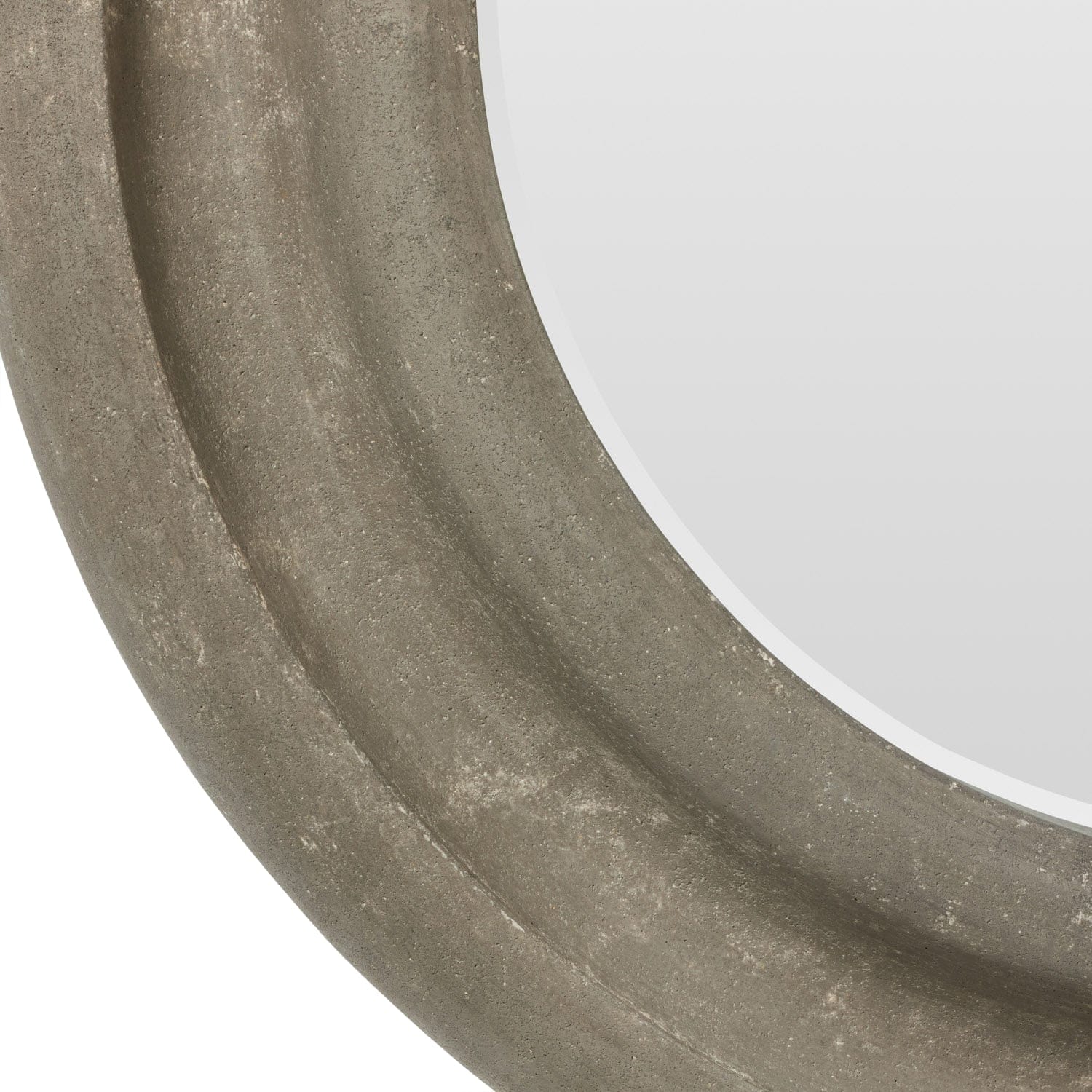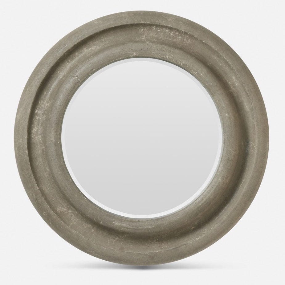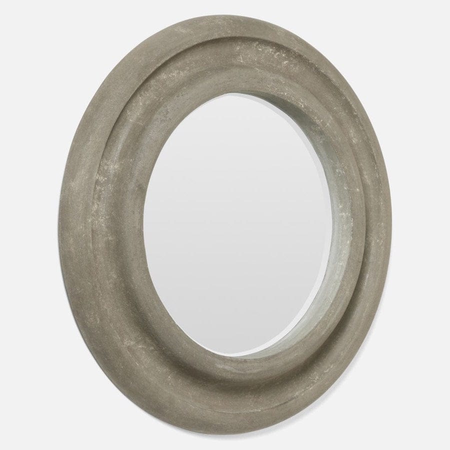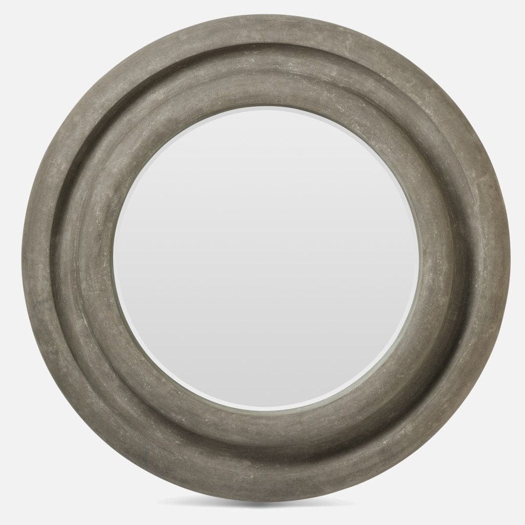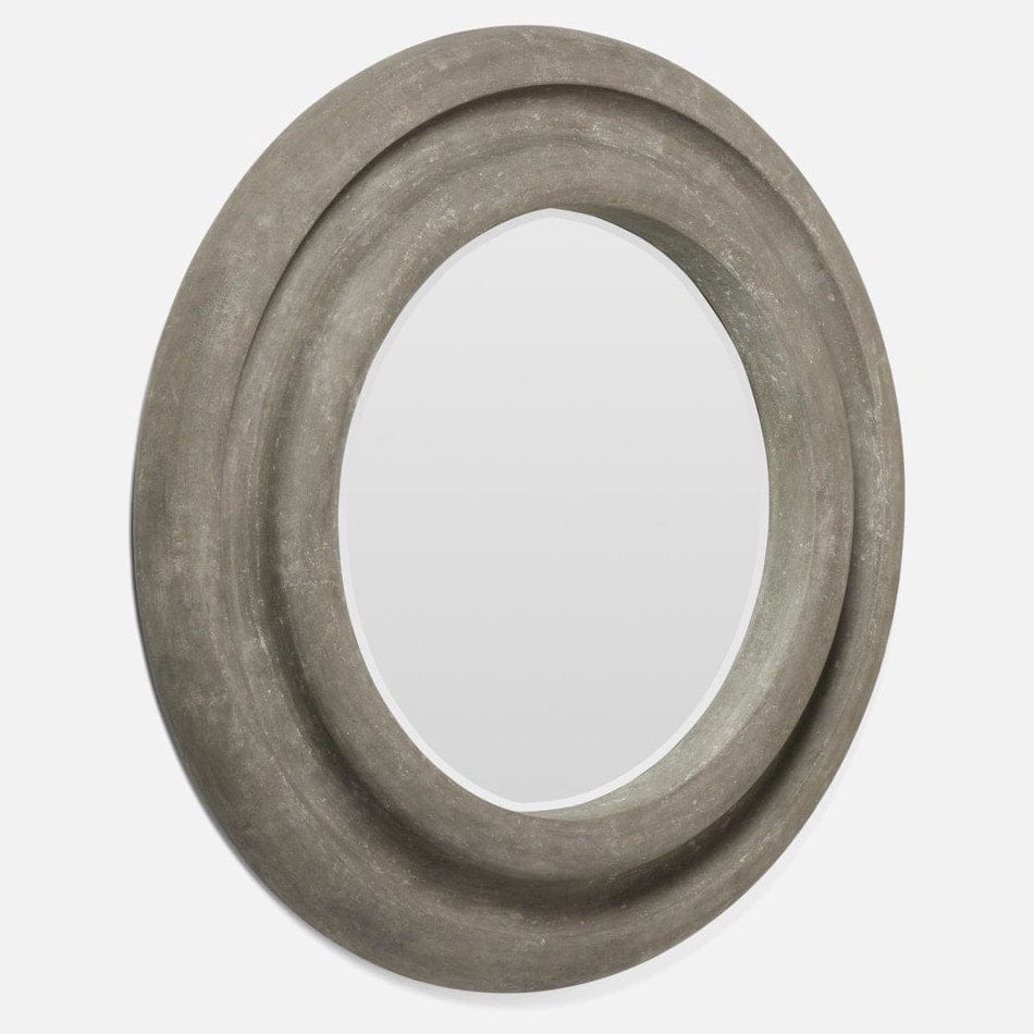 Our Simone outdoor mirror features a deep rounded channel running through the center of its cast stone frame.