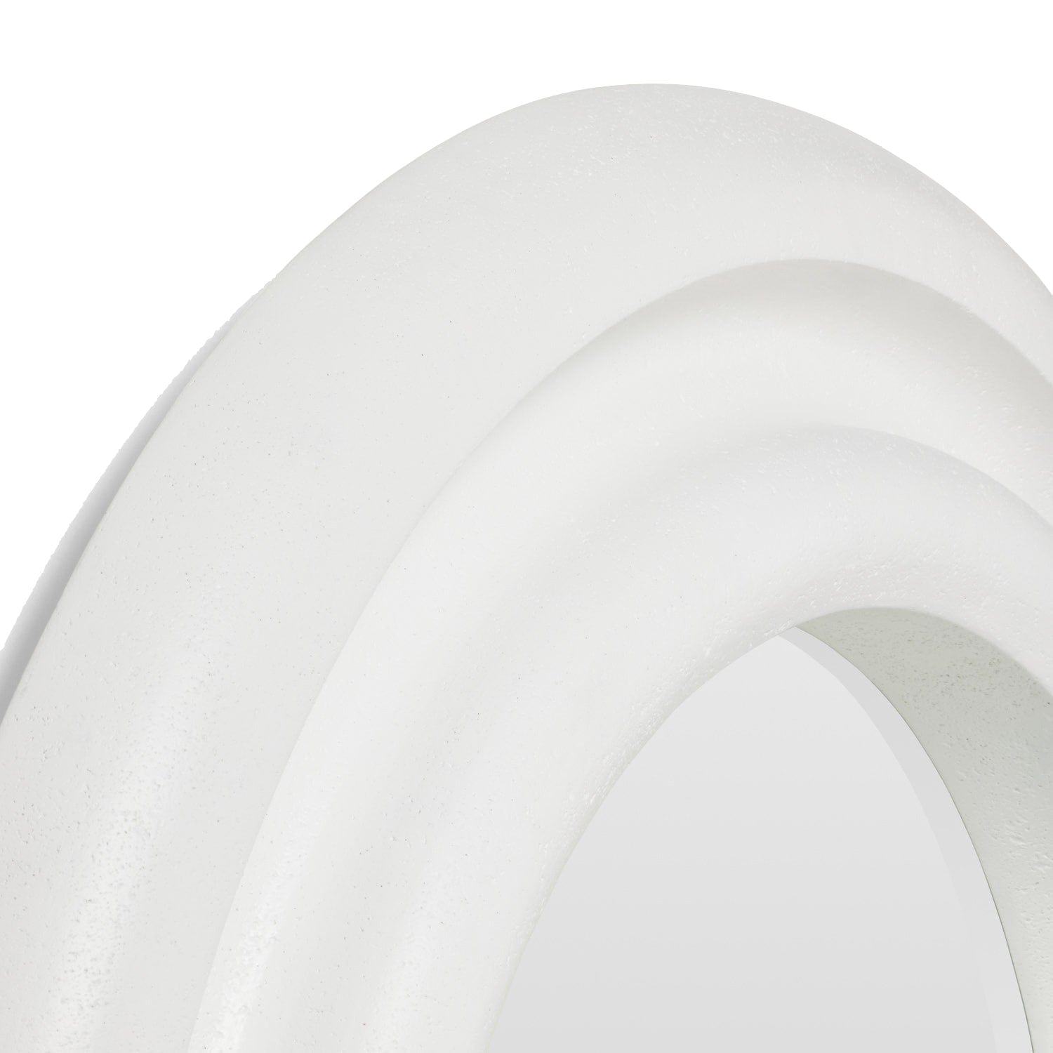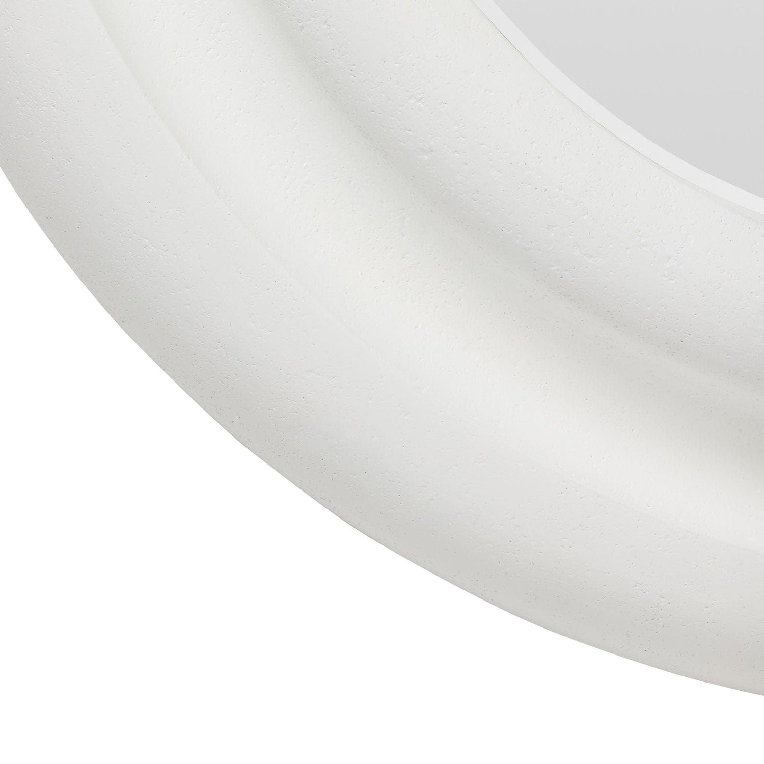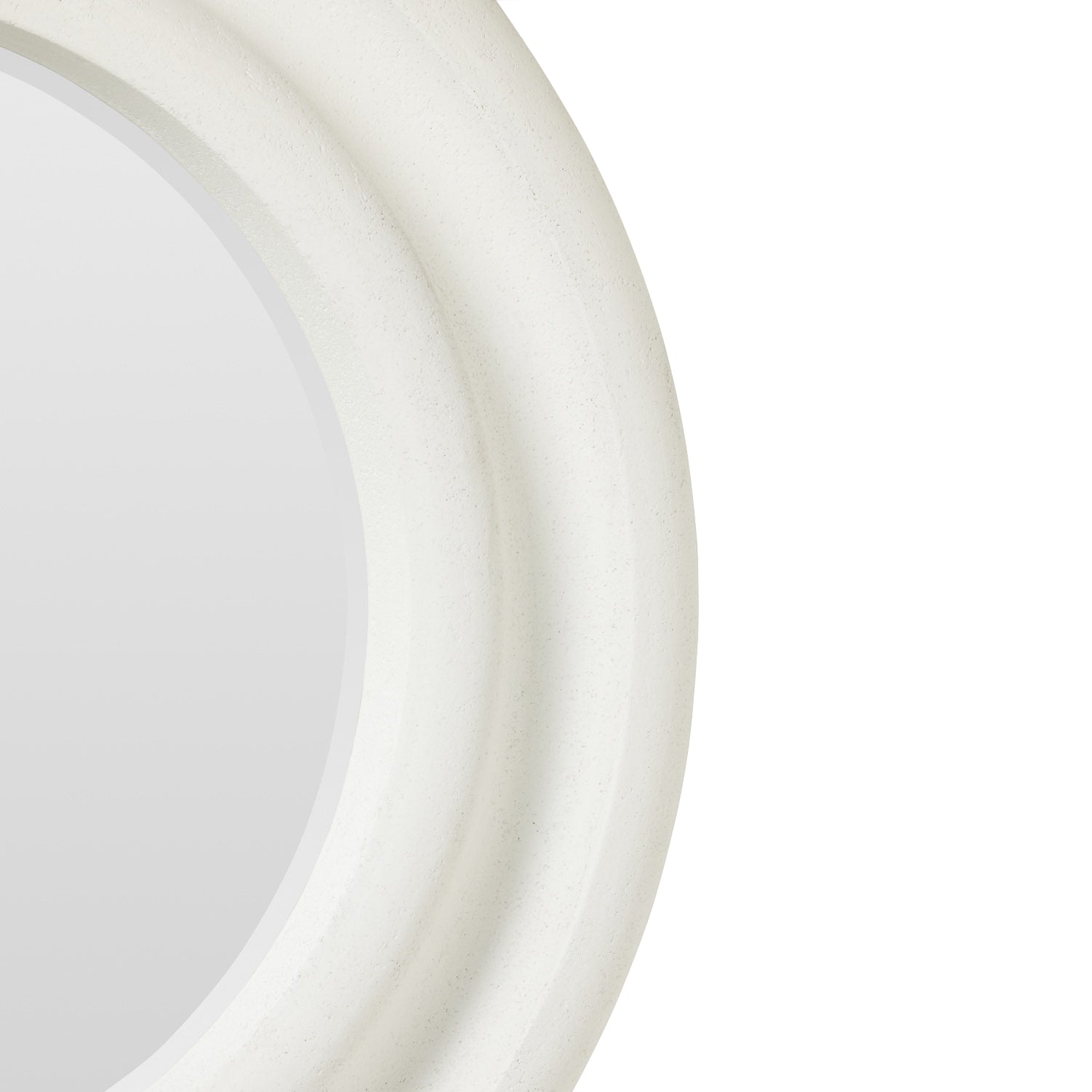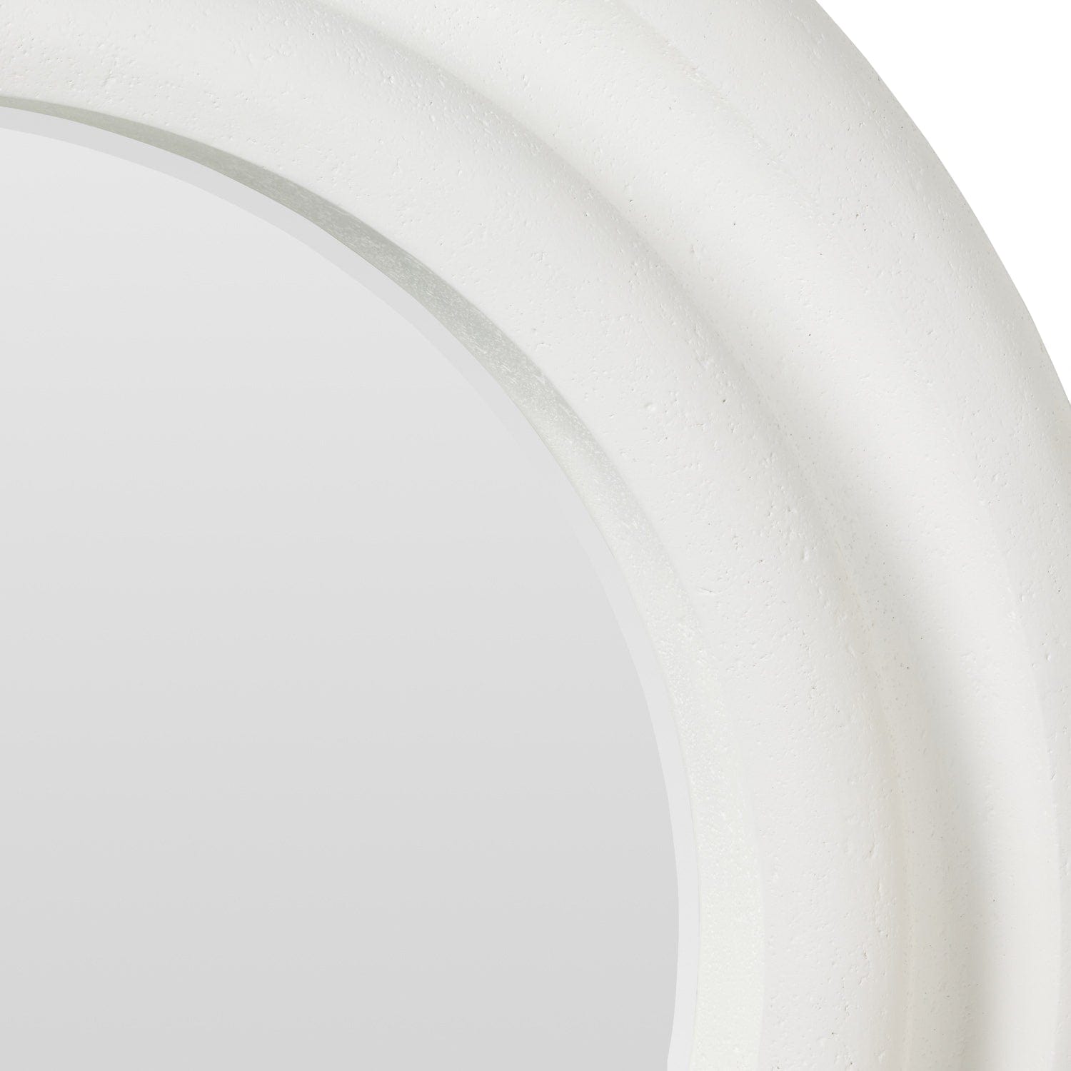 Our Simone outdoor mirror features a deep rounded channel running through the center of its cast stone frame.