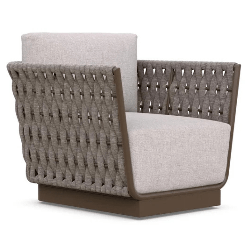 Embark on a journey with the Santa Cruz Swivel Club Chair from Azzurro Living, where fine craftsmanship and modern technology fuse together to create a dazzling masterpiece. Entangled around a powder-coated aluminum frame, the rich texture of all-weather wicker captivates and outperforms harsh conditions. The handmade precision of the Santa Cruz Club Chair merges outdoor utility with beauty of form and materials. Rest easier with 100% solution dyed acrylic performance fabrics, high-density cushions, and oversized proportions, achieving unmatched comfort and extreme weather resilience. The Santa Cruz Swivel Club ensures exquisite materials, showcasing forms, and deep comfort, enticing you to unwind and take it easy.