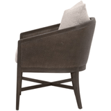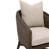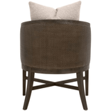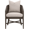 Experience comfort in style with the McGuire Arm Chair by Essentials For Living. Meticulously crafted, it features a solid oak wood frame enveloped in rattan, exuding sophistication with organic and earthy elements. Its upholstery ensures resilience and easy upkeep, while the intricately cane-wrapped surround detail adds artisanal flair. Nestle into the removable and reversible seat cushion filled with a sumptuous blend of 50% polyester and 50% down feather, accompanied by a coordinating square throw pillow. With an "X" stretcher base design for both stability and visual appeal, this chair seamlessly merges high performance with superior craftsmanship, elevating any living space.