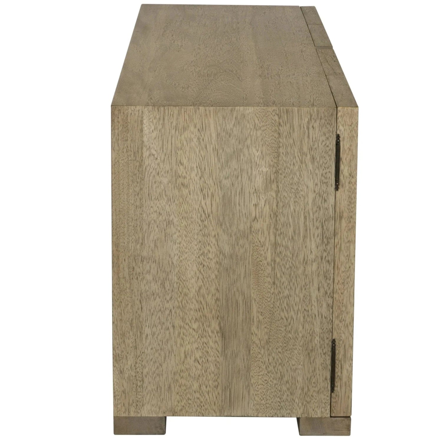 Handcrafted with a generous amount of raw materials, the Nuala Sideboard in Washed Walnut features four deeply constructed coffered style checkerboard doors, a box body, and plinth style feet. The minimal design makes this versatile and an easy to place storage and style standout.