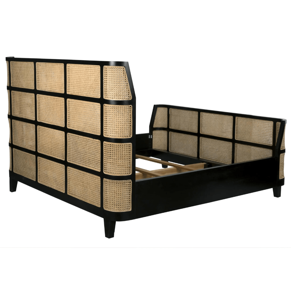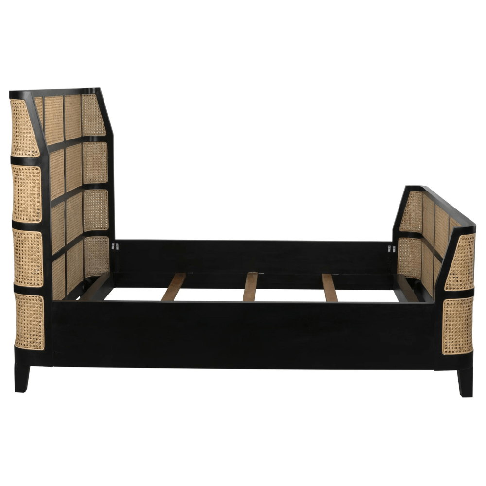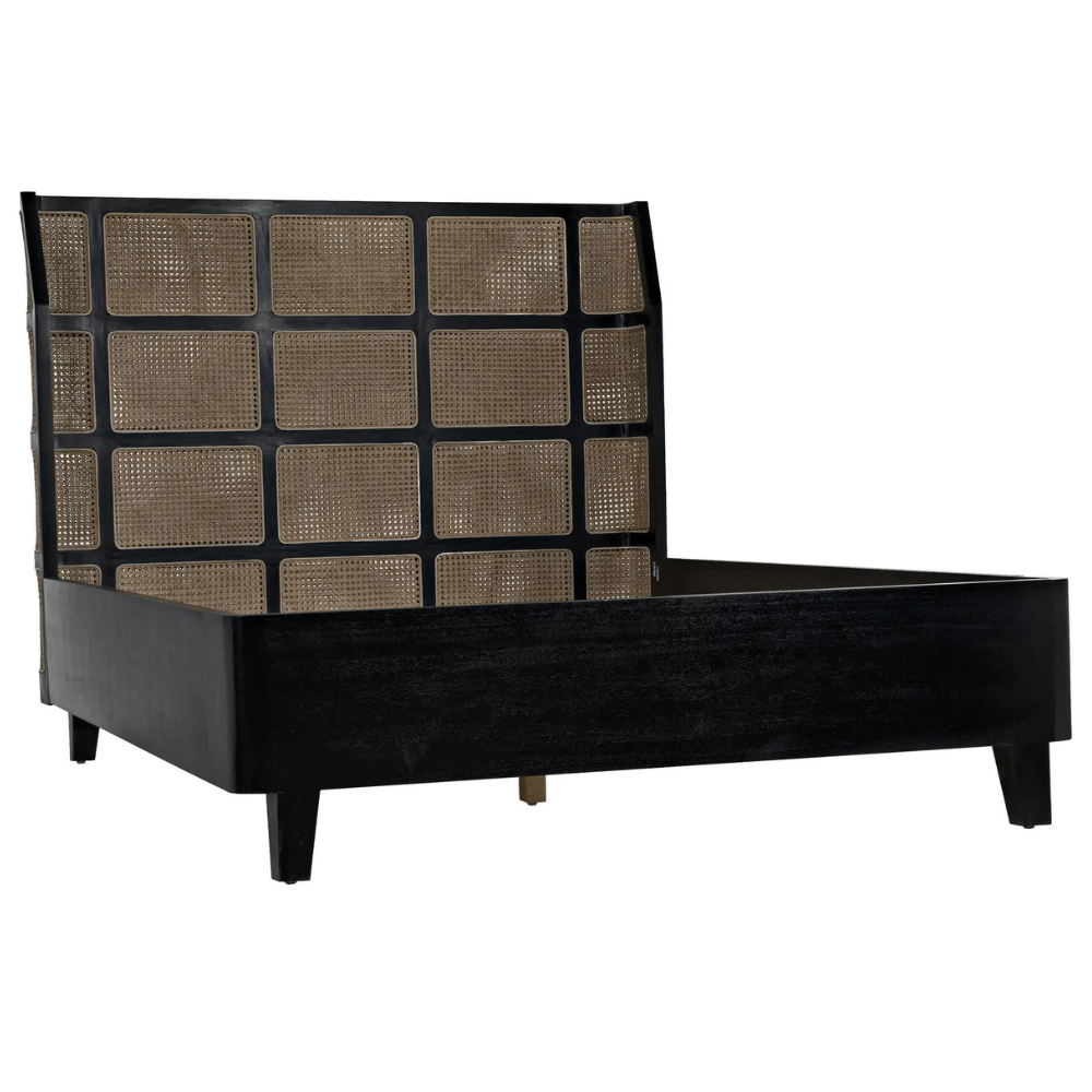 Our popular Porto Queen Bed frame in our lustrous Hand Rubbed Black finish is now offered minus the natural rattan footboard for a more simplified look.