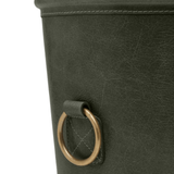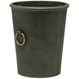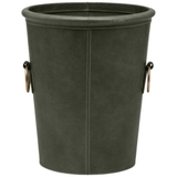 Covered with luxurious leather, the Ogden's well-tailored look is impeccably finished with equestrian-esque stitching and round brass handles. The large basket is perfect for storing pillows, blankets, and unruly toys, while the wastebasket has an equally sophisticated look.