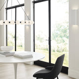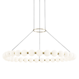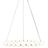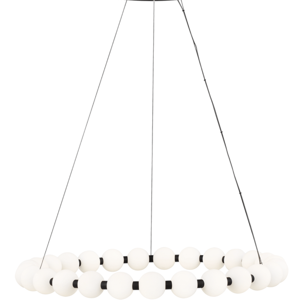 The Orbet Chandelier by Sean Lavin is a modern upgrade to the classic ring design. Milk-glass orbs provide a soft diffused aesthetic for the integrated LEDs and are accented with metal spacers for a touch of contrast. This fixture is the perfect design for dining room, foyers, hospitality and more.