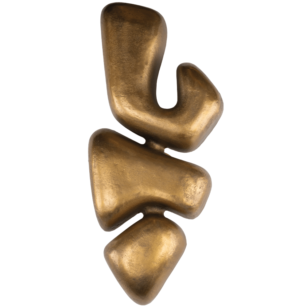 Orphir draws inspiration from the dichotomy between the serene geography and the harsh, wind-swept climate of Orkney, Scotland. Completed with a textured bronze finish, three abstract shapes are set against a central Vintage Gold Leaf stem, creating a profile that resembles an aerial view of the Orkney coastline. Each graphic element of this wall washer has been dished to shade the light and soften the dramatic forms. From the rounded edges to the textural bronze finish, the details capture the artist's vision. Part of our Chandler McLellan collection.