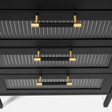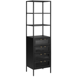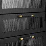 A smooth steel frame complements the fluted glass details of Payne. The glass doors each house two shelves and are finished with polished handles for sleekness and stability.