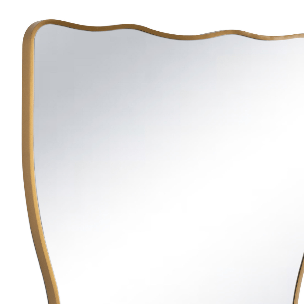 Introducing the Piero Metal Mirror, a stunning homage to vintage-inspired Italian design. With its ribbon-shaped brass-plated frame, this mirror exudes elegance and sophistication, reminiscent of classic European aesthetics. Its artful design adds a touch of timeless charm to any space, making it a versatile accent piece for both traditional and contemporary interiors.