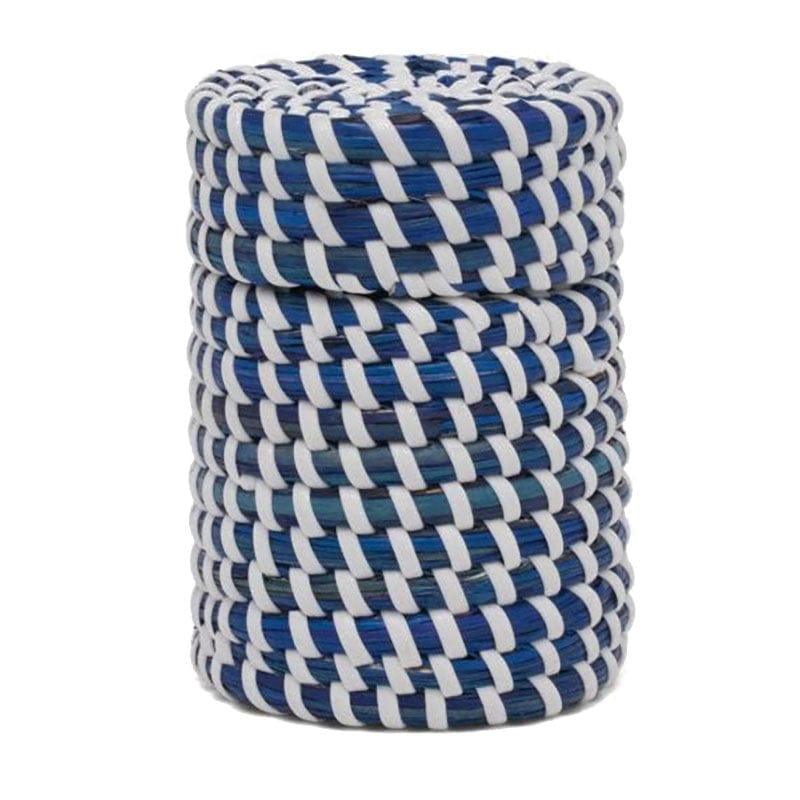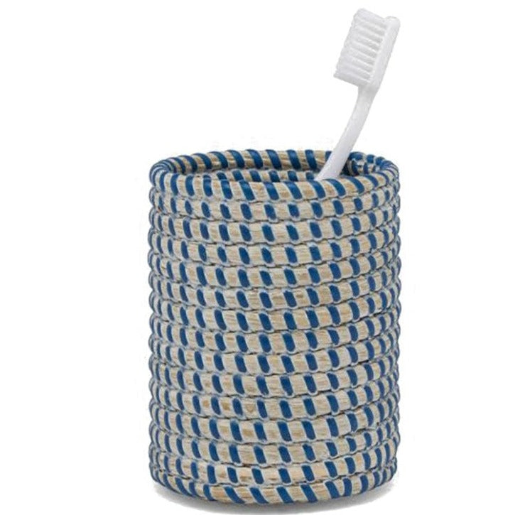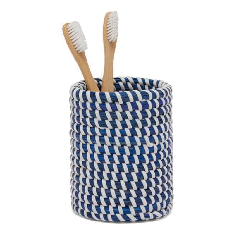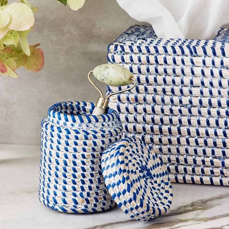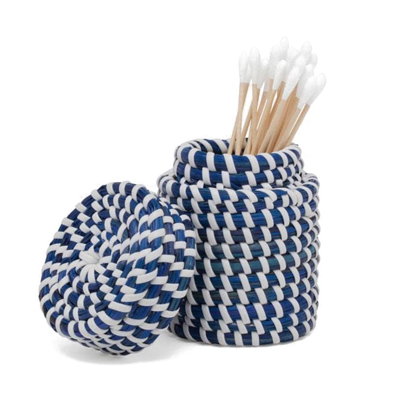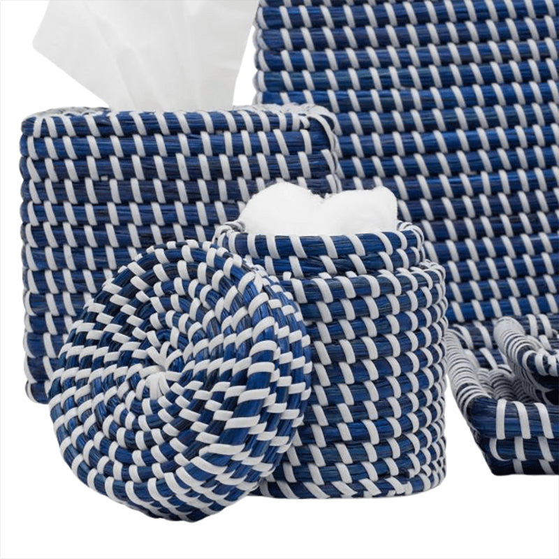 A high-contrast pattern skips across this nautical-meets-modern bath accessory collection.