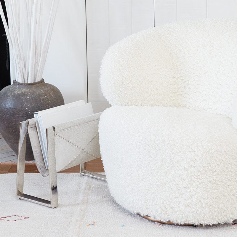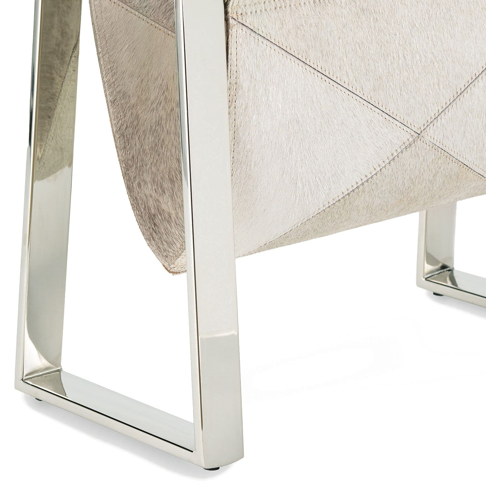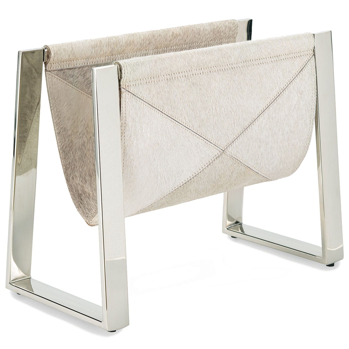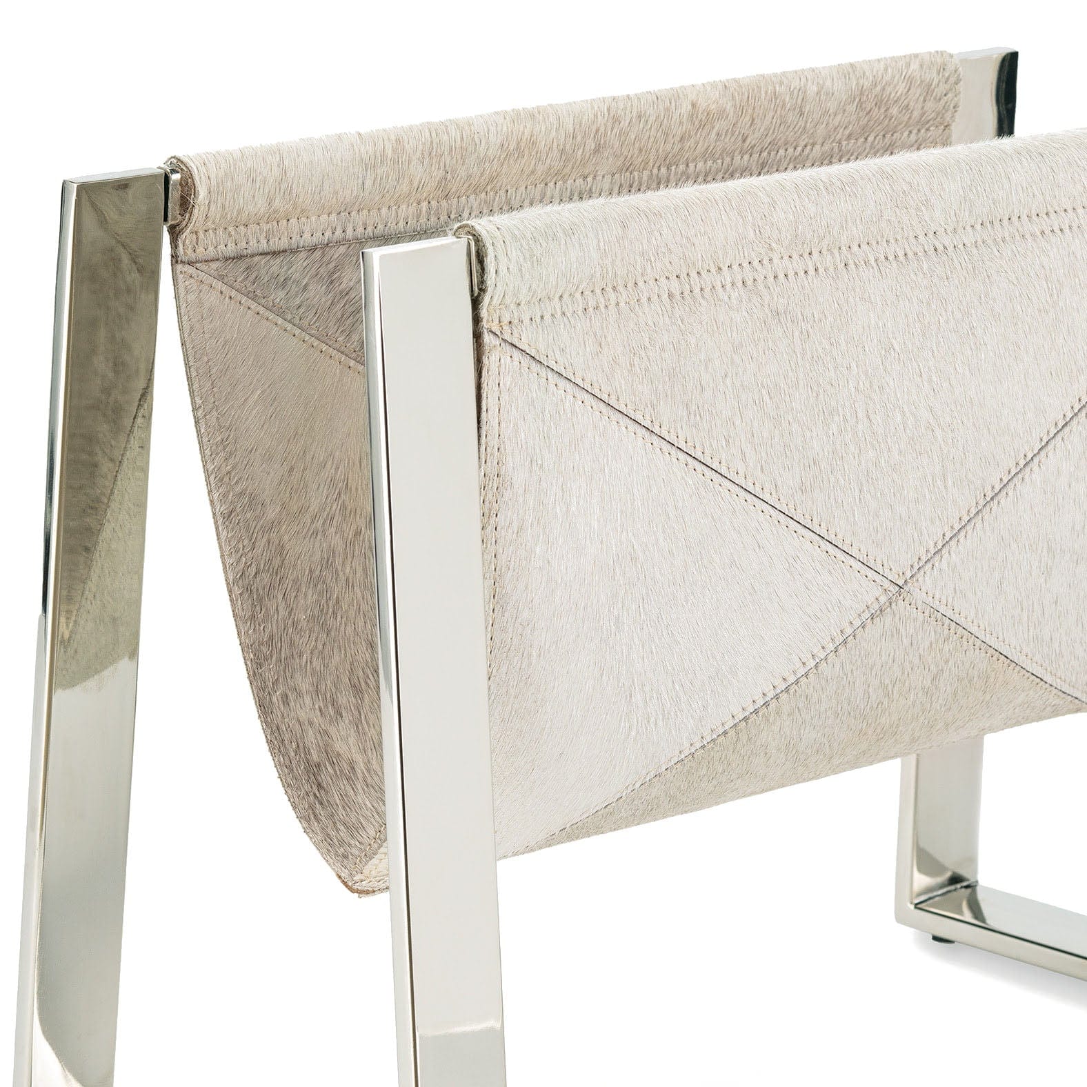 Add a touch of luxury and a rustic feel to your space with this genuine hair on hide magazine rack. A sleek metal frame provides plenty of support, while offering a modern contrast that keeps the look clean and refined.