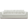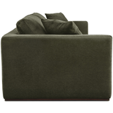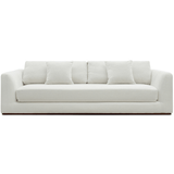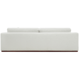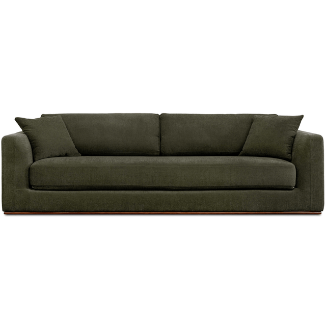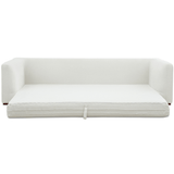 The Rue sleeper sofa effortlessly transforms from a chic sofa to a comfortable sleeper. Its back cushions can be removed, and the seat folds down to rest on the floor, creating a mattress that offers spaciousness between a double and queen size. Filled with a luxurious 70% feather fill and featuring a bench seat design, the sofa's rubber wood base creates a unique floating appearance.