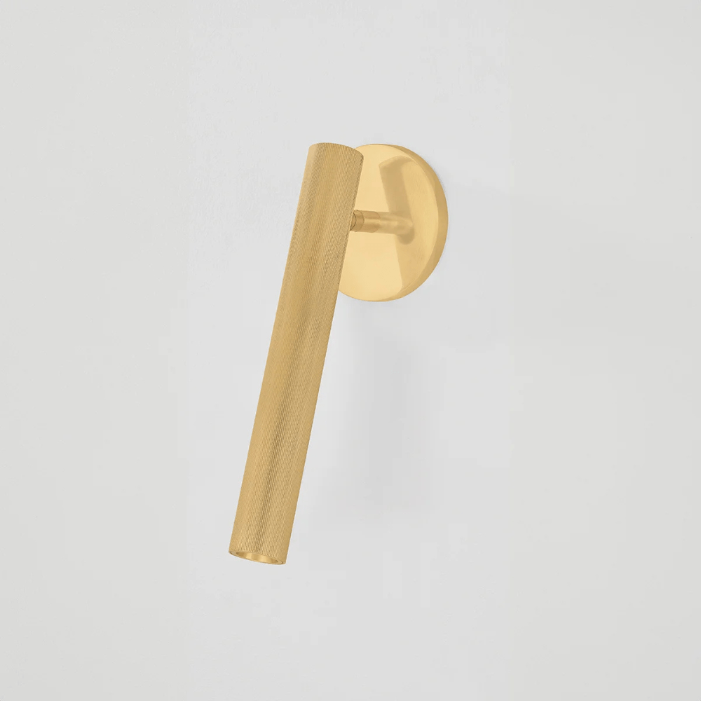 Integrated with CSL’s ‘Whisper’ technology, Simeon offers peak functionality in a streamlined sconce format. While understated, a level of style is achieved with the extruded ribbing on the Aged Brass articulating shade. Within this elongated silhouette, an LED light source and acrylic diffuser work together to create a powerful, glare-free spotlight that can be directed as needed. Highly versatile, Simeon can be mounted on either a wall or ceiling.