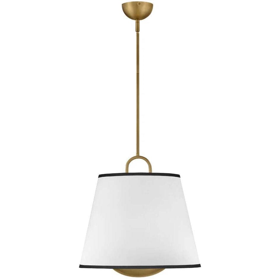 A take on traditional sconce styles, Sonia’s tapered shades feature contrasting black trim at the top and bottom. The chic metal frame and accents are finished in versatile Lacquered Brass to complement any color palette.