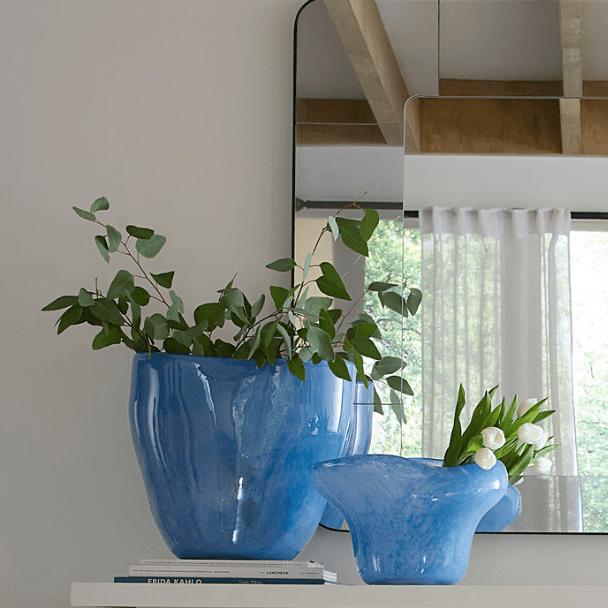 Handblown from glass as blue and inviting as cool waters on a warm day, the artisan quality of this vessel is immediately apparent. Its softly curved lines and subtle shading gradients showcase the talent of our craftsmen, while its wide mouth makes it easy to fill.