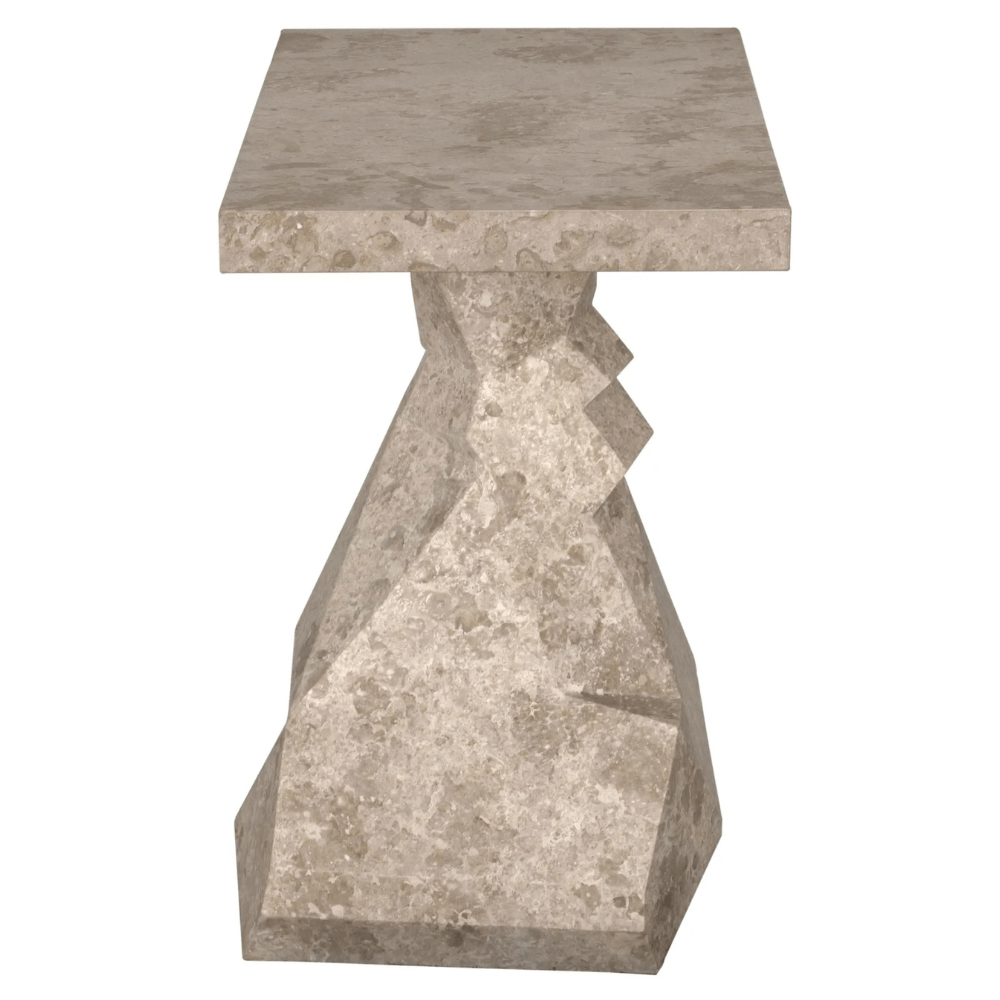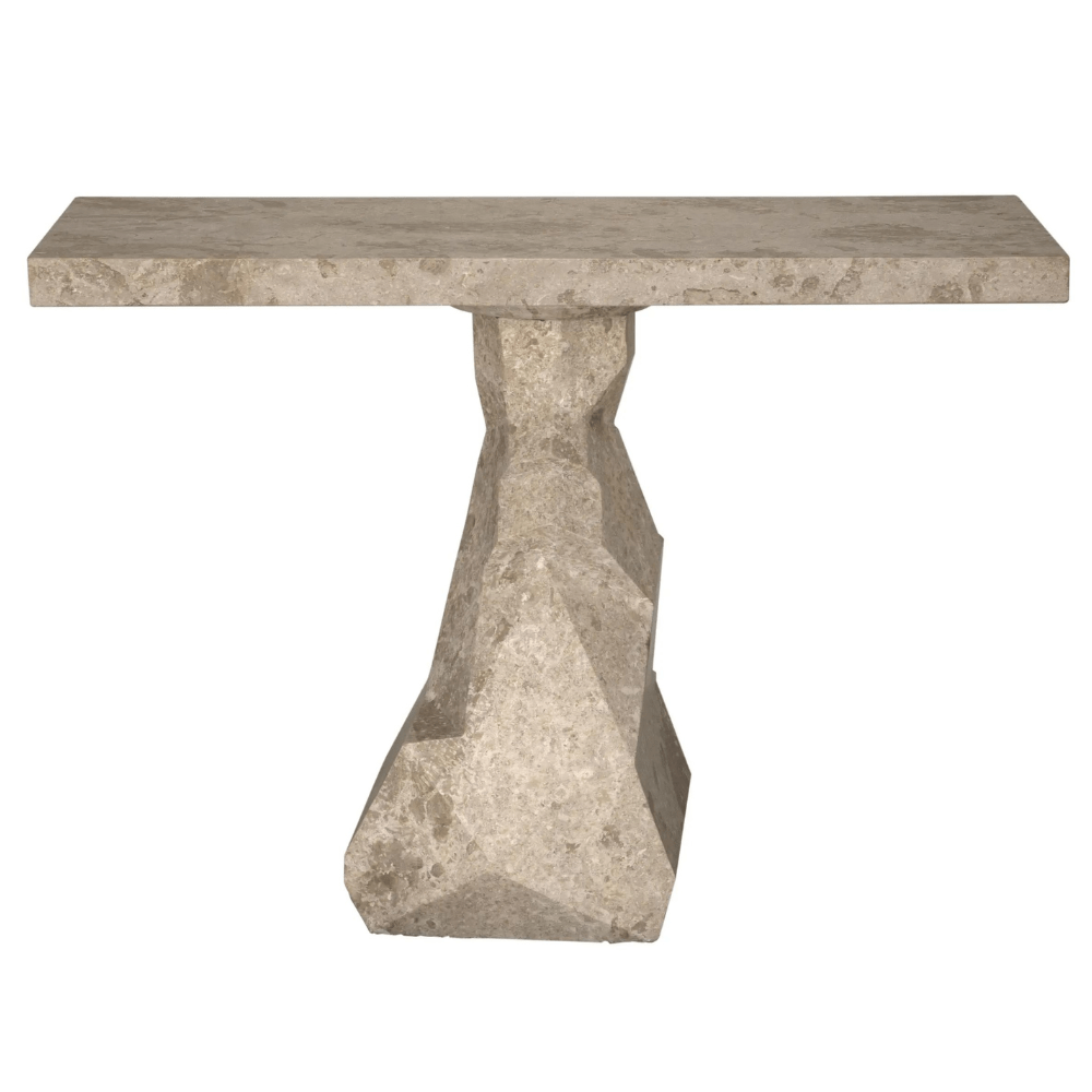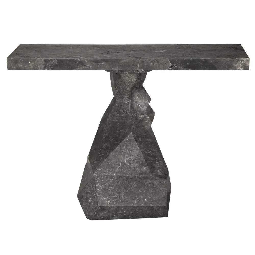 The Tilden Console is a stunning piece crafted entirely from marble, showcasing a bold geometric silhouette. Its unique design features a faceted pedestal base supporting a rectangular top, combining artistic form with practical function. The natural veining of the marble adds texture and depth, making it a sophisticated focal point in any entryway, hallway, or living space. Ideal for those seeking a statement piece that merges elegance with modernity.