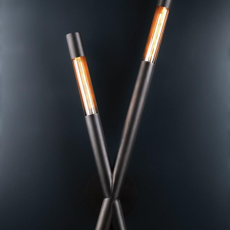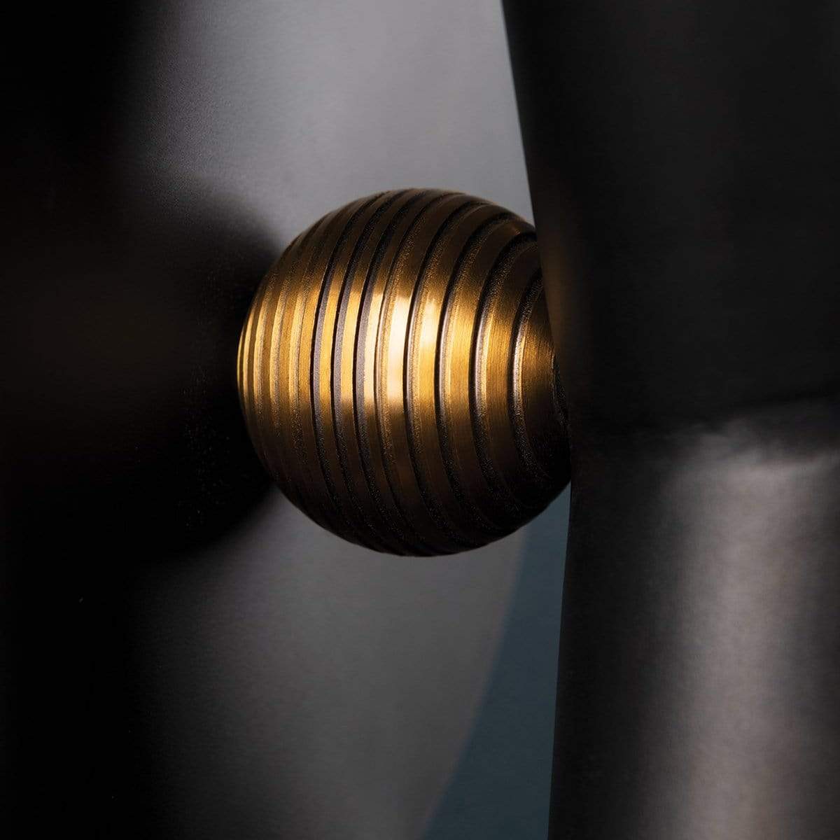 Minimalist, elegant, and novel, Hendrix layers dark tubes and ridged brassy spheres against each other in an imaginative light fixture. With a feeling almost magnetic, the sconce has a futuristic noir feel while the suspended versions evoke a mobile art installation. Its large scale helps it make an impact on the space it illuminates. Hendrix's light source peeks out through well-placed apertures, scintillating glimpses of crackling energy.