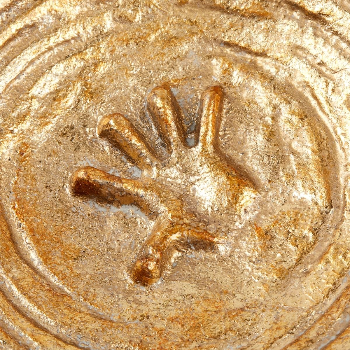 Add a touch of artistry to your entrance table with our Maros Bowl. This gold-leafed catchall, imprinted with the artist's signature hand imprint, acts as an elegant and practical place to store your jewelry or keys with easy access. Set this handmade bowl atop your vanity or display it in your foyer for function and style.
