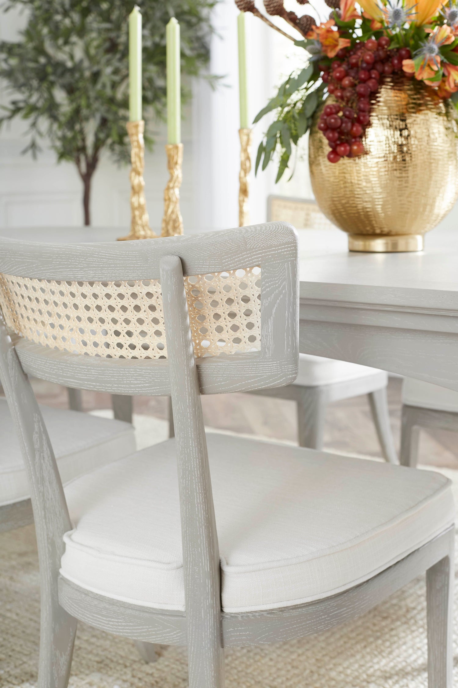 The Marshall Chair Collection is a wonderfully avant-garde addition to our seating selections. With a slight nod to the Art Deco period of the late 1930s, this piece is crafted from solid wood and bleached octagonal cane. The back is slightly curved, and the seat is fitted with a welted natural linen cushion. The Marshall Side Chair is a standout addition to any dining room, office, or den.