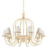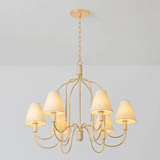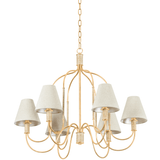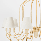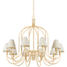 The Parisian-inspired designs of the Warrensburg family channel vintage motifs for a fresh take on romantic lighting. The intricate swooping metalwork recalls the shape of an antique carriage, enhanced by the glamorous Vintage Gold Leaf finish. Subtle Abaca-wrapped details and linen shades add natural, artisanal elements. Whether as a 1-light sconce or 6 or 10-light chandelier, Warrensburg brings a dose of fantasy to modern and traditional spaces.