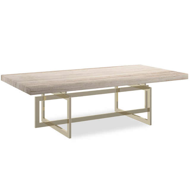 An extraordinary example of organic luxe, the Wish You Were Here Cocktail Table offers a gray flowing sandstone top where earthy tones meld with greiges and soft grays to create a visual that’s sleek and modern while still feeling warm and natural. A bold, open geometric base finished in Whisper of Gold creates a mix of materials and brings in the glamour.